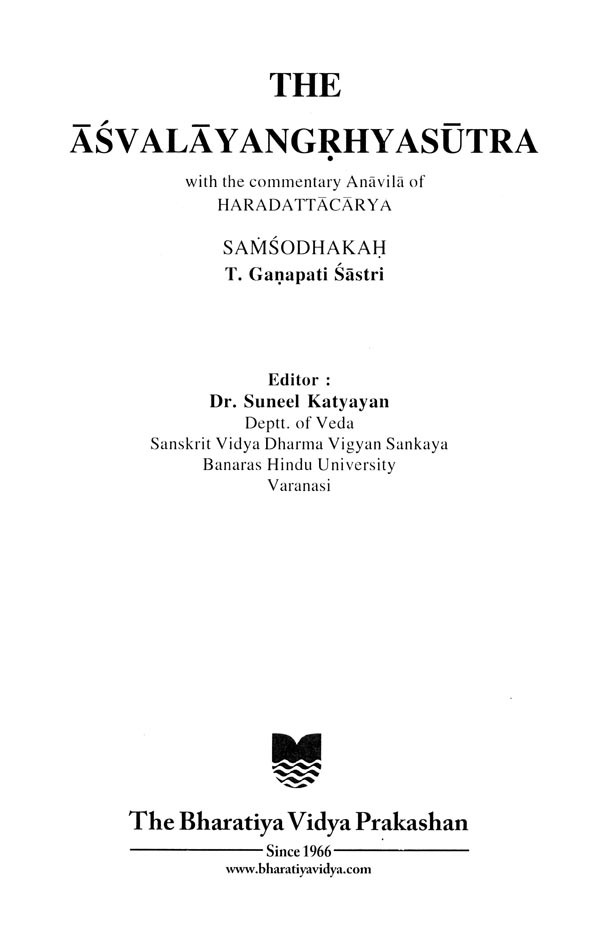 आश्वलायनगृह्यसूत्रम्- The Asvalayangrhyasutra with the Commentary Anavila of Haradattacarya