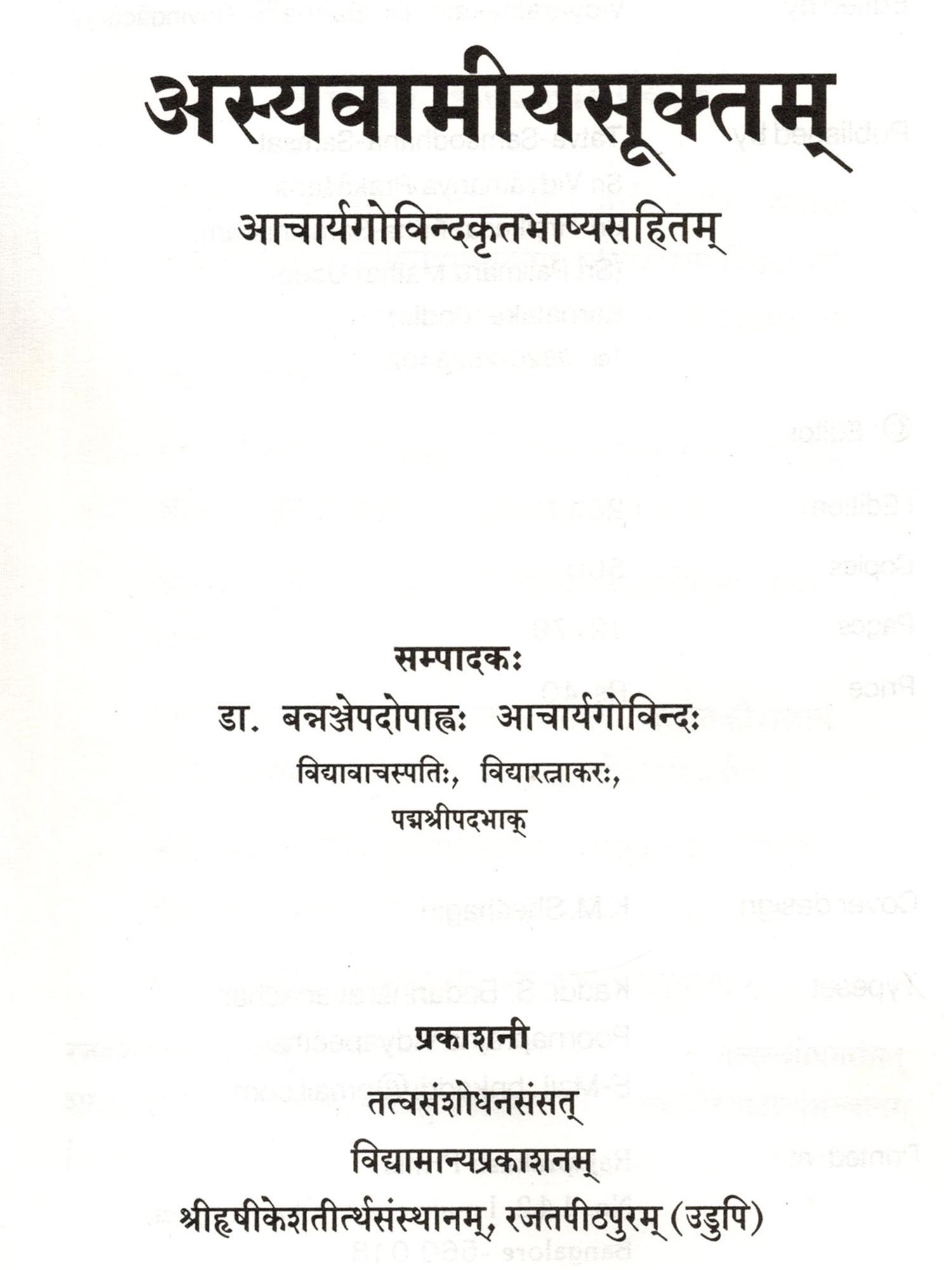 Publisher: TATTWA SAMSHODHANA SAMSAT (AFFILIATED TO KARNATAKA SAMSKRIT UNIVERSITY)