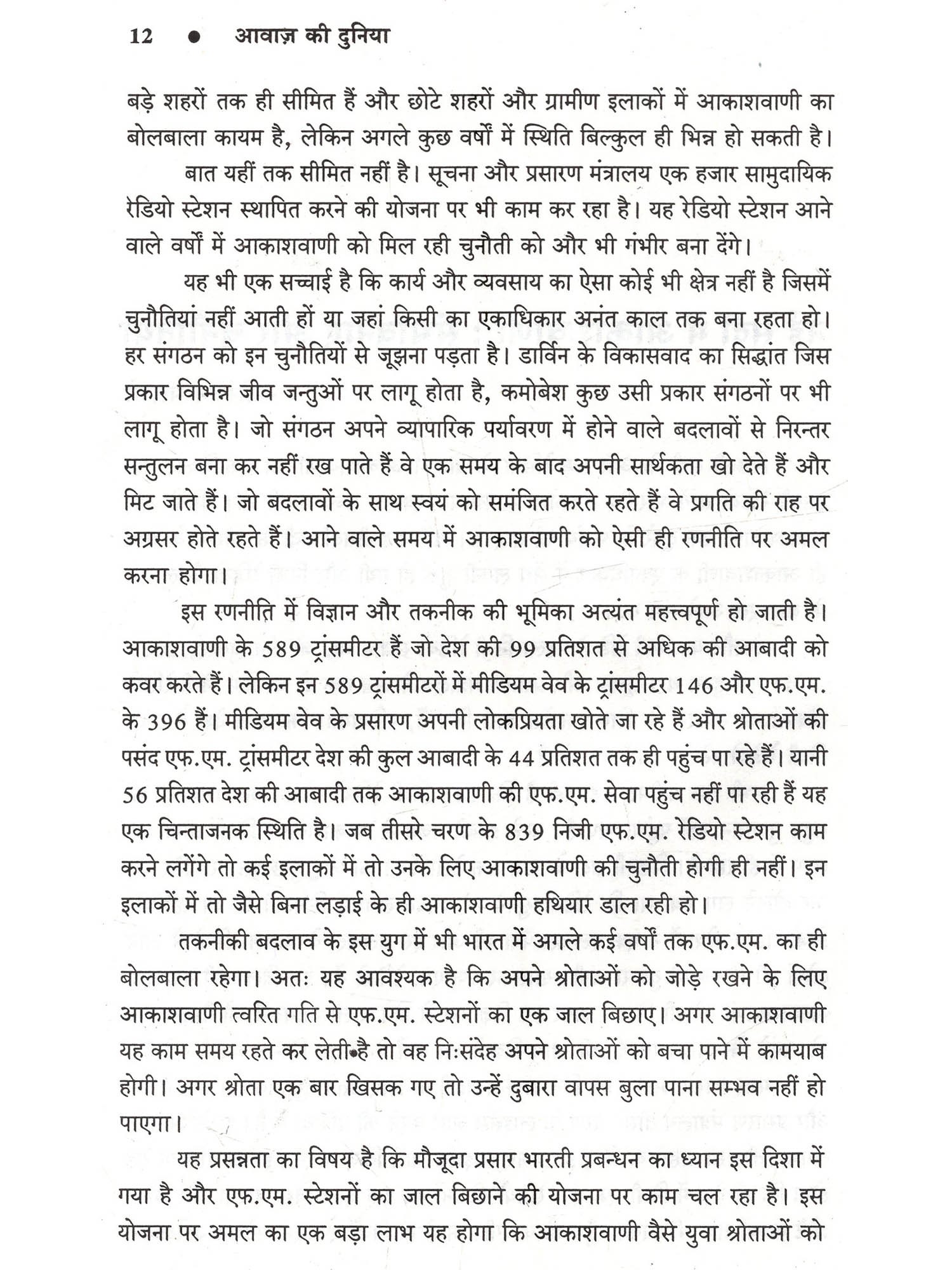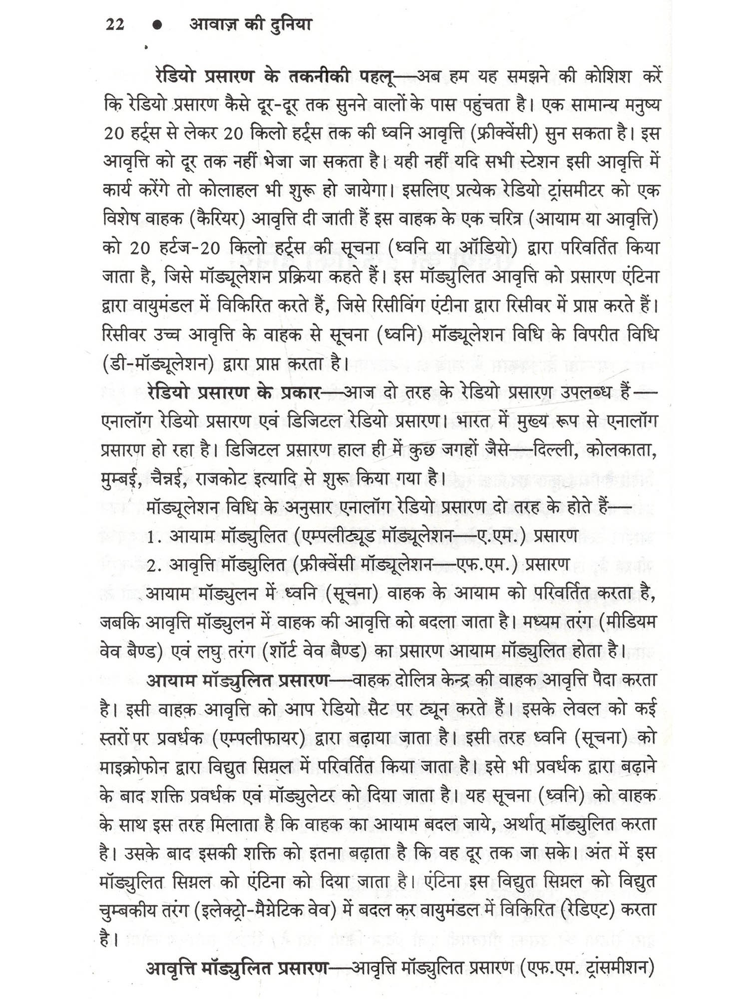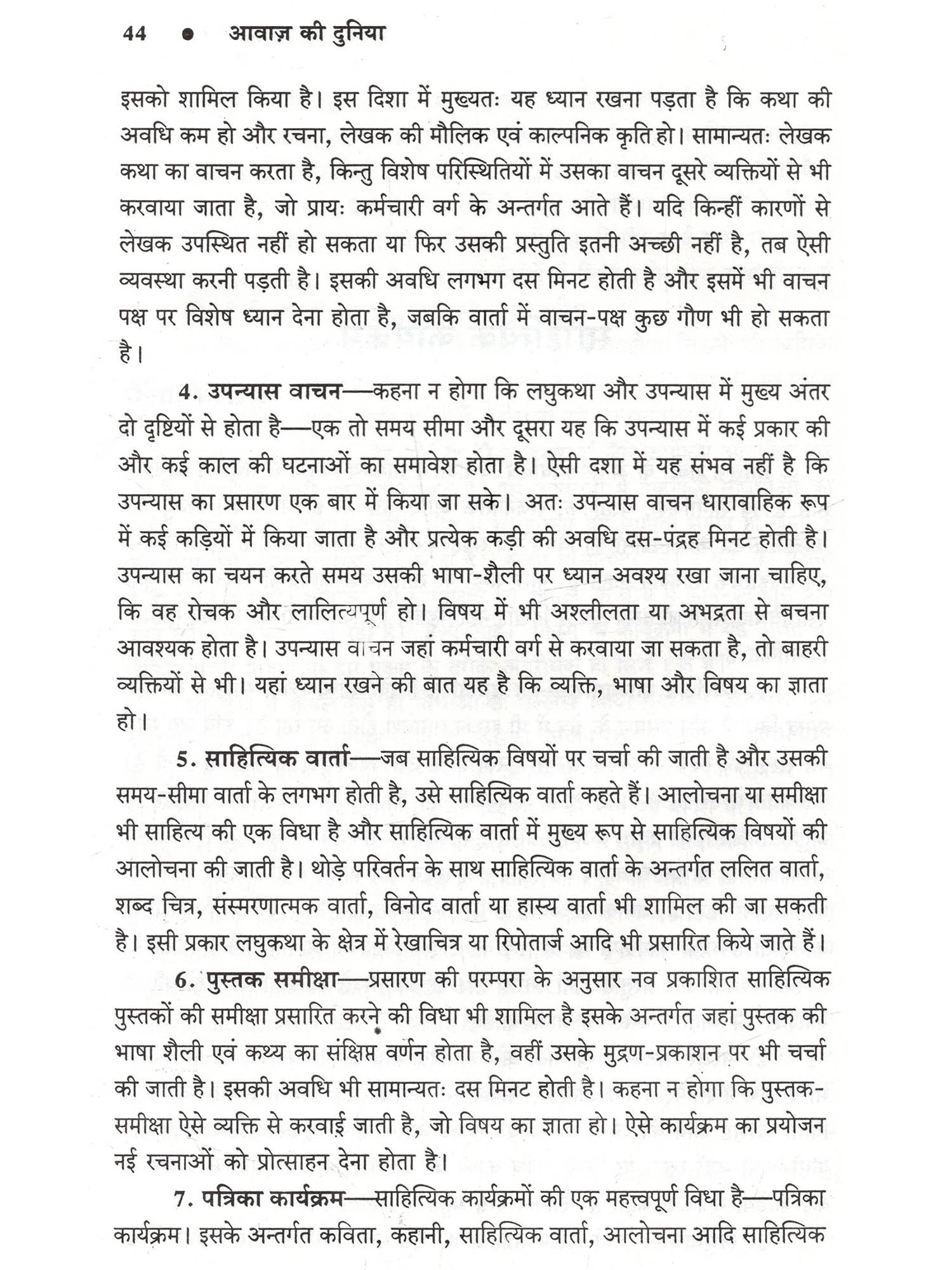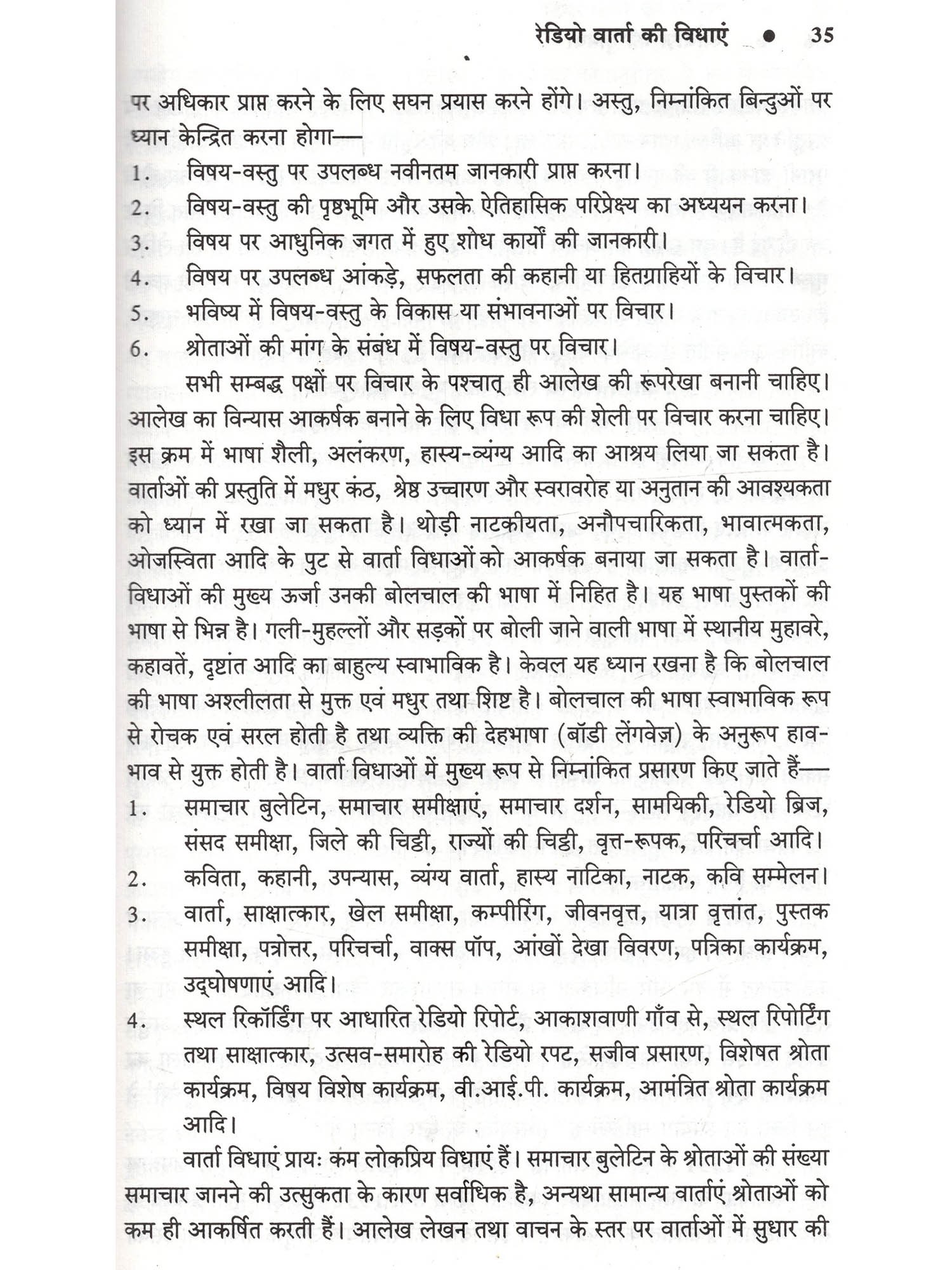 हमारे जीवन में प्रसारण का बड़ा महत्त्व है। सूचना, शिक्षा और मनोरंजन की दृष्टि से सुनने वालों को आकाशवाणी ने गहरे तक प्रभावित किया है और ये सिलसिला कहीं थमा नहीं है, बल्कि निरन्तर जारी है। इसके मुख्य कारण हैं आकाशवाणी के कार्यक्रमों की विश्वसनीयता, आम बोलचाल की संयत भाषा और उच्चारण की शुद्धता। आकाशवाणी के प्रसारणों में हर स्तर पर अनुशासन है, चाहे वो आवाज़ का हो, बोलने की शैली का या फिर भाषा के प्रयोग का हो। मौलिकता तो अनिवार्य शर्त है ही। इन अनुशासनों का पालन किए बिना आकाशवाणी के कार्यक्रमों में प्रतिभागिता संभव नहीं है। आकाशवाणी की इन्हीं विशेषताओं के कारण वार्ताकार और कलाकार कार्यक्रमों में प्रतिभागिता के लिए आतुर रहते हैं। इस पुस्तक में प्रसारण की प्रमुख विधाओं पर जिन प्रसारण विशेषज्ञों और प्रस्तुतकर्त्ताओं के विचार सम्मिलित किए गए हैं, वे शोधपरक हैं। अधिकांश प्रसारण विशेषज्ञ प्रतिष्ठित लेखक भी हैं उनकी रचनाओं के लिए अनेक बार उन्हें पास भी प्राप्त हुए हैं। आकाशवाणी के प्रसारणों नियमित सुनने वालों के लिए ये नाम अपरिचित भी नहीं हैं, क्योंकि अभी भी उनके द्वारा लिखे या प्रस्तुत किये गये नाटक या रूपक विभिन्न केन्द्रों से बराबर प्रसारित होते रहते हैं। साथ ही ऐसे विद्वान प्रसारकों के आलेख भी हैं, जो आकाशवाणी के कर्मचारी प्रशिक्षण संस्थान में प्रशिक्षण गतिविधियों का संचालन करते रहे हैं, ताकि प्रसारण कर्मी प्रशिक्षण के बाद गुणवत्तापूर्ण श्रेष्ठ कार्यक्रम प्रस्तुत कर सकें।