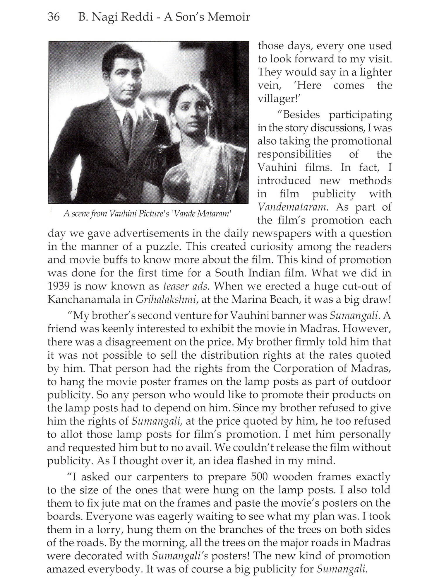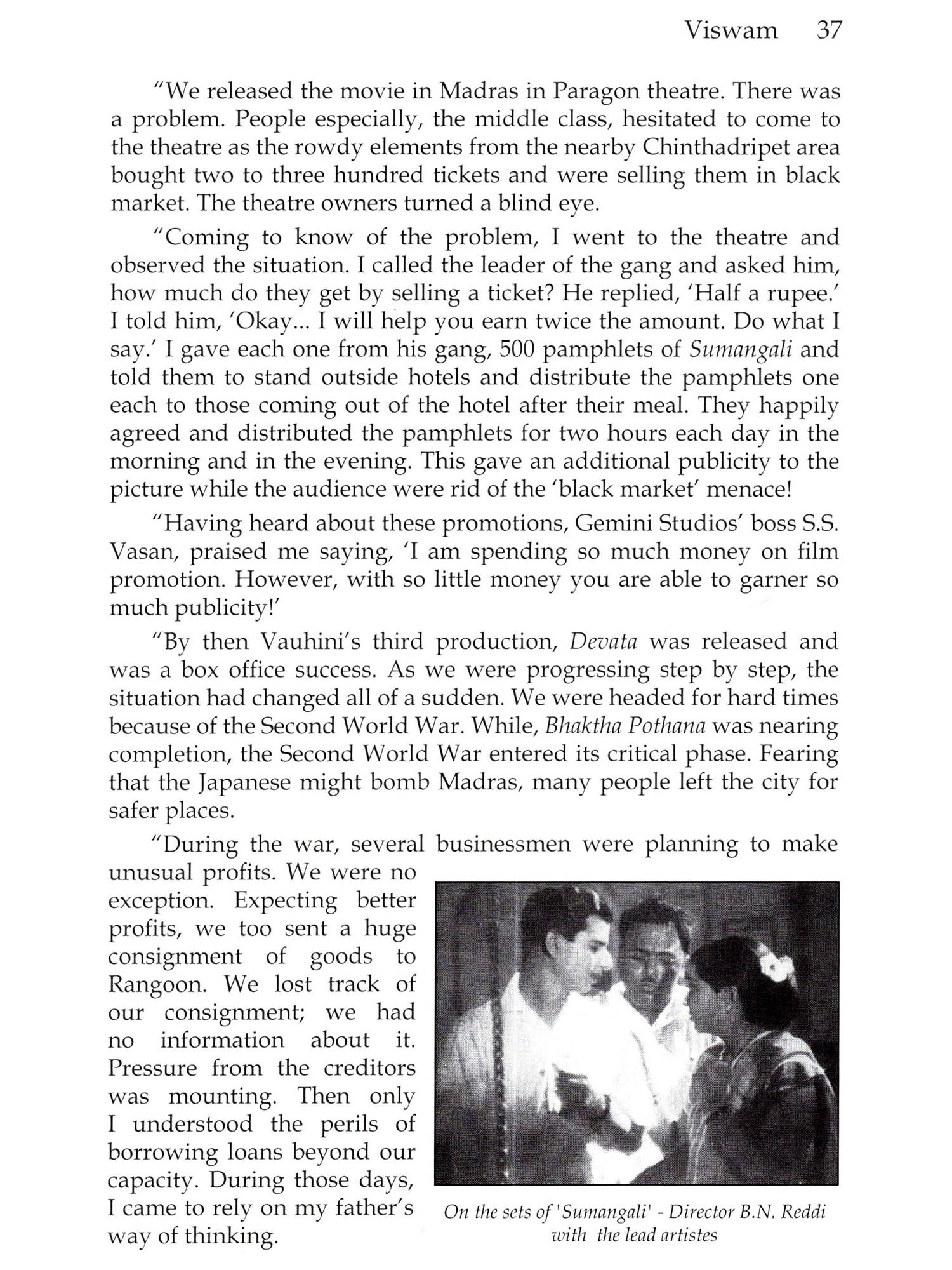 A visionary, Sri B. Nagi Reddi lead ninety-two eventful years of his life marked by fascinating series of amazing as well as engrossing events read like the fairytales in the children's magazine 'Chandamama, the unique gift to the children of a few generations by himself and his compatriot Chakrapani. Born and raised in a remote village in Andhra Pradesh, the elders there taught him traditional values. Even as a teenager he had participated in the independence movement and at 20 he had succeeded in business at a far away Rangoon. The help he had provided to a poor family there is a testament to his concern and commitment to the social causes. The magazines he had founded and managed along with one of India's finest printing presses, the incredible films he had produced, the largest film studio in South East Asia he had founded and the first multi-speciality hospital in South India he had established are by now legendary. Bestowed with awards and accolades in each and every field he had ventured into, Sri Nagi Reddi never owned his success, instead he credited it to his unit members. A true karma yogi. This book is an authentic, riveting story on the life and times of the humble legend - B. Nagi Reddi, by his equally illustrious son - Viswam.