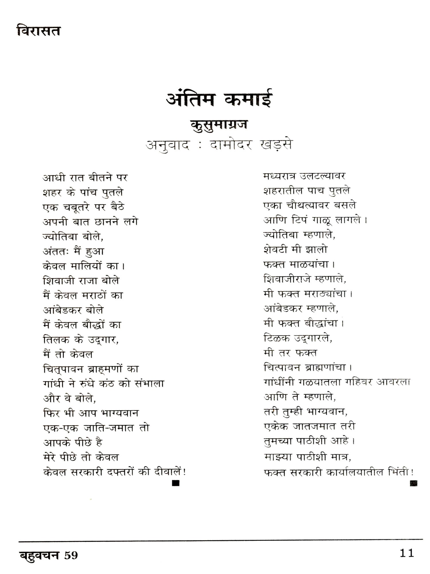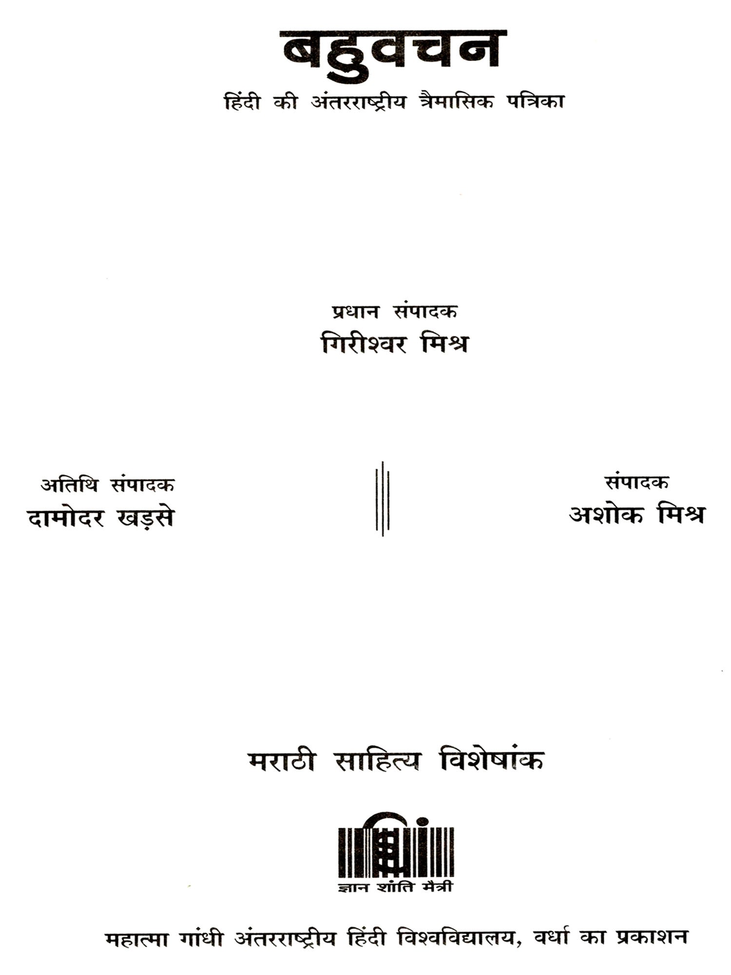 बहुवचन- मराठी साहित्य विशेषांक: Bahuvachan- Marathi Literature Special Issue : International Quarterly Magazine in Hindi, Issue: 59 (October-December 2018)