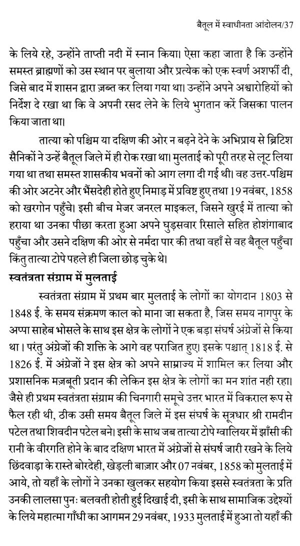 बैतूल जिले में अंग्रेजी सरकार के विरुद्ध लड़ी गई आज़ादी की लड़ाई पूरे जोश के साथ लड़ी गई थी। इसमें यहाँ के जनजातीय समुदाय की भी महत्वपूर्ण भूमिका रही। उन अमर बलिदानियों, क्रांतिकारियों, स्वतंत्रता सेनानियों ने देश की आज़ादी के लिए अपना सर्वस्व अर्पण कर दिया था।
