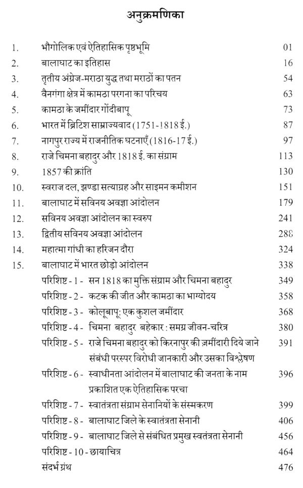 मै आभारी हूँ अपने सभी साथियों, मित्रों का यथा-1818 ई के क्रांति के महा नायक चिमना जी बापू के 13 वीं-14 वीं पीढ़ी के वंशज श्री विजय शामराव बाहेकर (गोंदिया), श्री आनंद वर्मा, श्री लोकचंद ठाकरे, श्री मनीष हेड़ाऊ और श्री विशाल गोखले और अनुजवत श्री राजा उत्कर्ष शुक्ल जिनका मुझे हर समय यथोचित सहयोग मिला। मैं इस शोध को समझने में, संसाधन जुटाने में महती भूमिका निभाने वाले विख्यात संपादक, विवेकवान चिंतक और लेखक, संस्कृति कर्मी श्री सुभाष मिश्र, रायपुर का विशेष तौर पर आभारी हूँ जिन्होंने अपने वारासिवनी स्थित पं. राधाकिशन मिश्र पुस्तकालय के द्वार मेरे शोध अध्ययन के लिए सहर्ष खोल दिये थे। मेरे अग्रज आध्यात्मिक शख्सियत पं. शिवकुमार शुक्ल 'महाकाल', वारासिवनी के स्वतंत्रता संग्राम सेनानियों के परिजन श्री दिलीप मराठे, श्री प्रदीप जैन 'अय्या', मित्र श्री अनिल पिपरेवार के इस अप्रतिम सहयोग का मैं आभारी रहूँगा।