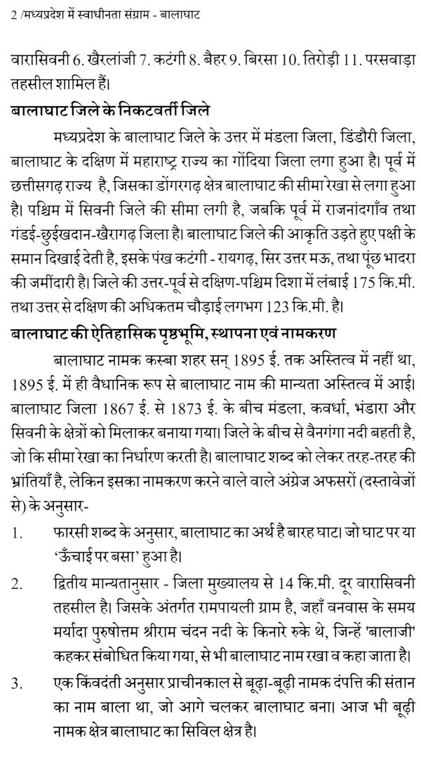 मैं स्वराज संस्थान संचालनालय, संस्कृति विभाग, मध्यप्रदेश का अत्यंत आभारी हूँ जिन्होंने बालाघाट जिले के स्वाधीनता संग्राम के लेखन का महत्वपूर्ण दायित्व मुझे प्रदान किया। अंत में इस पुस्तक में प्रत्यक्ष एवं अप्रत्यक्ष रूप से सहयोग के लिए सभी का धन्यवाद ज्ञापित करता हूँ।