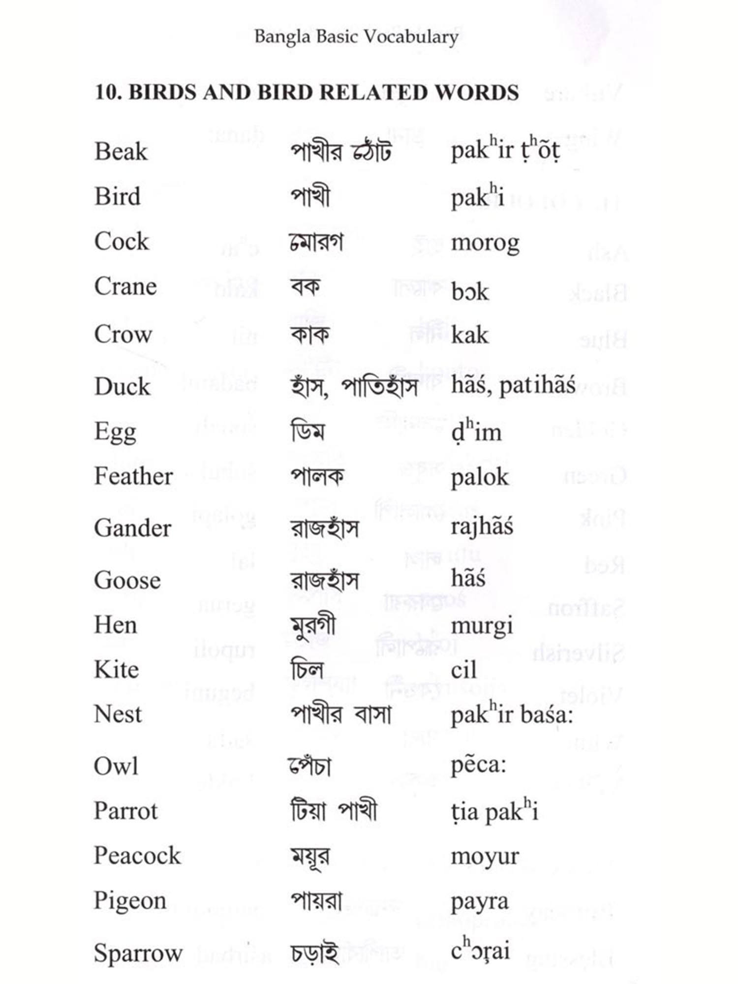 This book "Bangla Basic Vocabulary", containing the basic words of Bangla, is intended for the teachers and students of Bangla in its learning and teaching as a second language. This is an English-Bengali word book where Bengali words for very basic words of English language are given. The Bengali words are given in Bengali script. Those who know the script may read the words directly. For those readers, who don't know the script, the actual pronunciations of the Bengali words are given in roman script with diacritical marks and some extra symbols. This system would help the readers to pronounce the words the way Bengali speakers do.