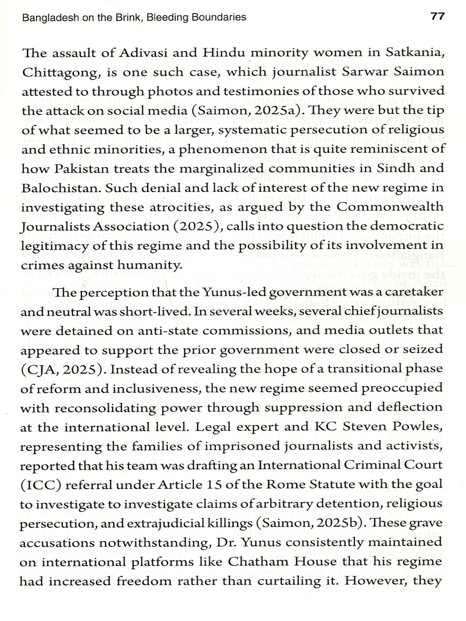 The fall of a longstanding, democratically elected government created a sudden power vacuum and a public crisis of confidence in the country's justice system, which many now perceive as either absent or co-opted by political agendas. With police forces overstretched, court systems paralysed, and local leaders either targeted or in hiding, citizens increasingly took justice into their own hands, which is the hallmark of a collapsing system. Public spaces, once protected by law, have become flashpoints for mob killings, often triggered by nothing more than suspicion, rumour, or political resentment that have a hidden agenda and pre-planning. Accusations of theft or harassment, a large portion of the violence had political or communal undertones and an abundant use of the infamous draconian blasphemy laws. Local human rights organizations, in their limited capacity, have reported that over 70% of lynching victims since August 2024 had ties to the former ruling Bangladesh Awami League or its affiliated student and labour wings.