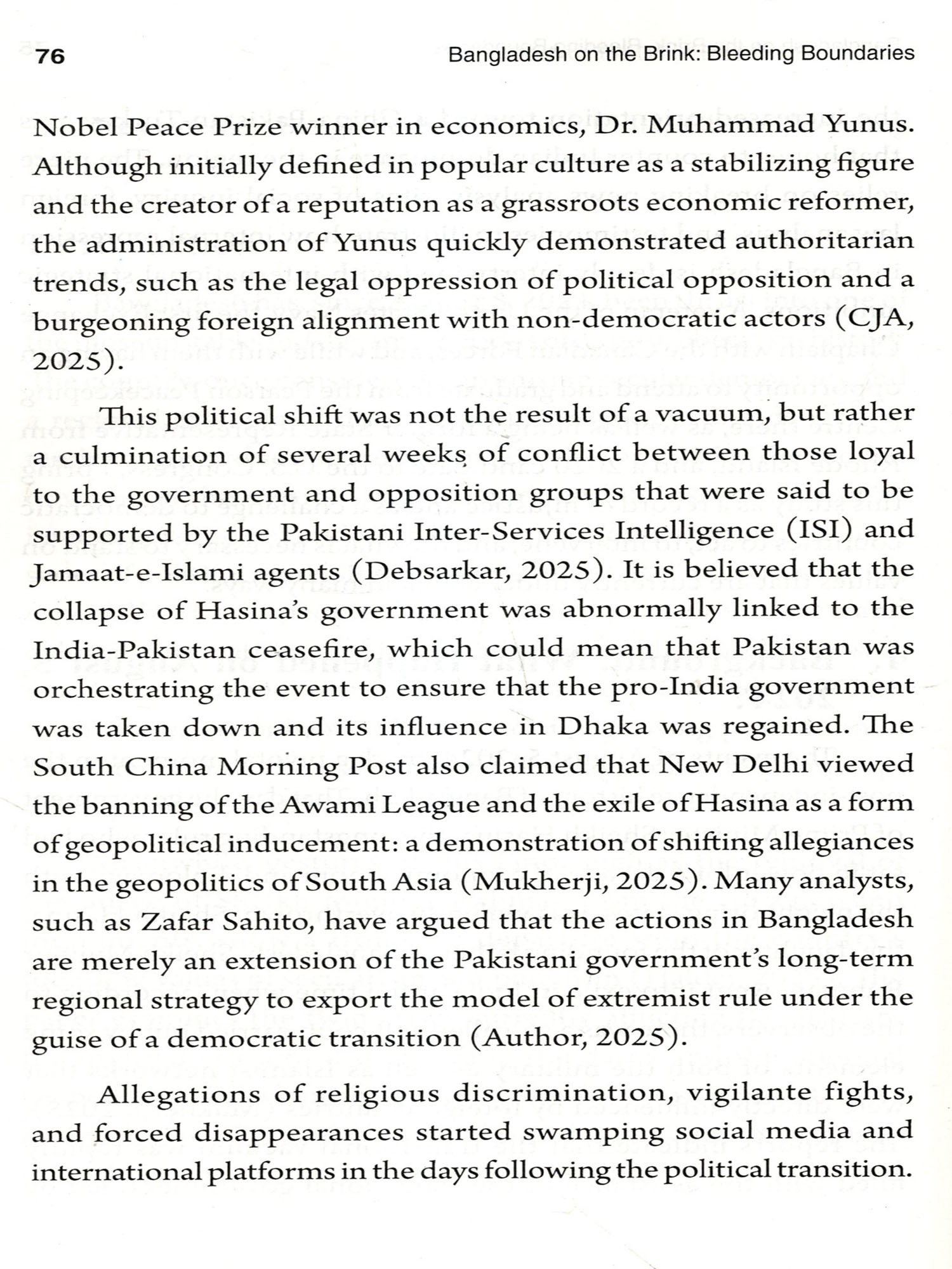 The fall of a longstanding, democratically elected government created a sudden power vacuum and a public crisis of confidence in the country's justice system, which many now perceive as either absent or co-opted by political agendas. With police forces overstretched, court systems paralysed, and local leaders either targeted or in hiding, citizens increasingly took justice into their own hands, which is the hallmark of a collapsing system. Public spaces, once protected by law, have become flashpoints for mob killings, often triggered by nothing more than suspicion, rumour, or political resentment that have a hidden agenda and pre-planning. Accusations of theft or harassment, a large portion of the violence had political or communal undertones and an abundant use of the infamous draconian blasphemy laws. Local human rights organizations, in their limited capacity, have reported that over 70% of lynching victims since August 2024 had ties to the former ruling Bangladesh Awami League or its affiliated student and labour wings.