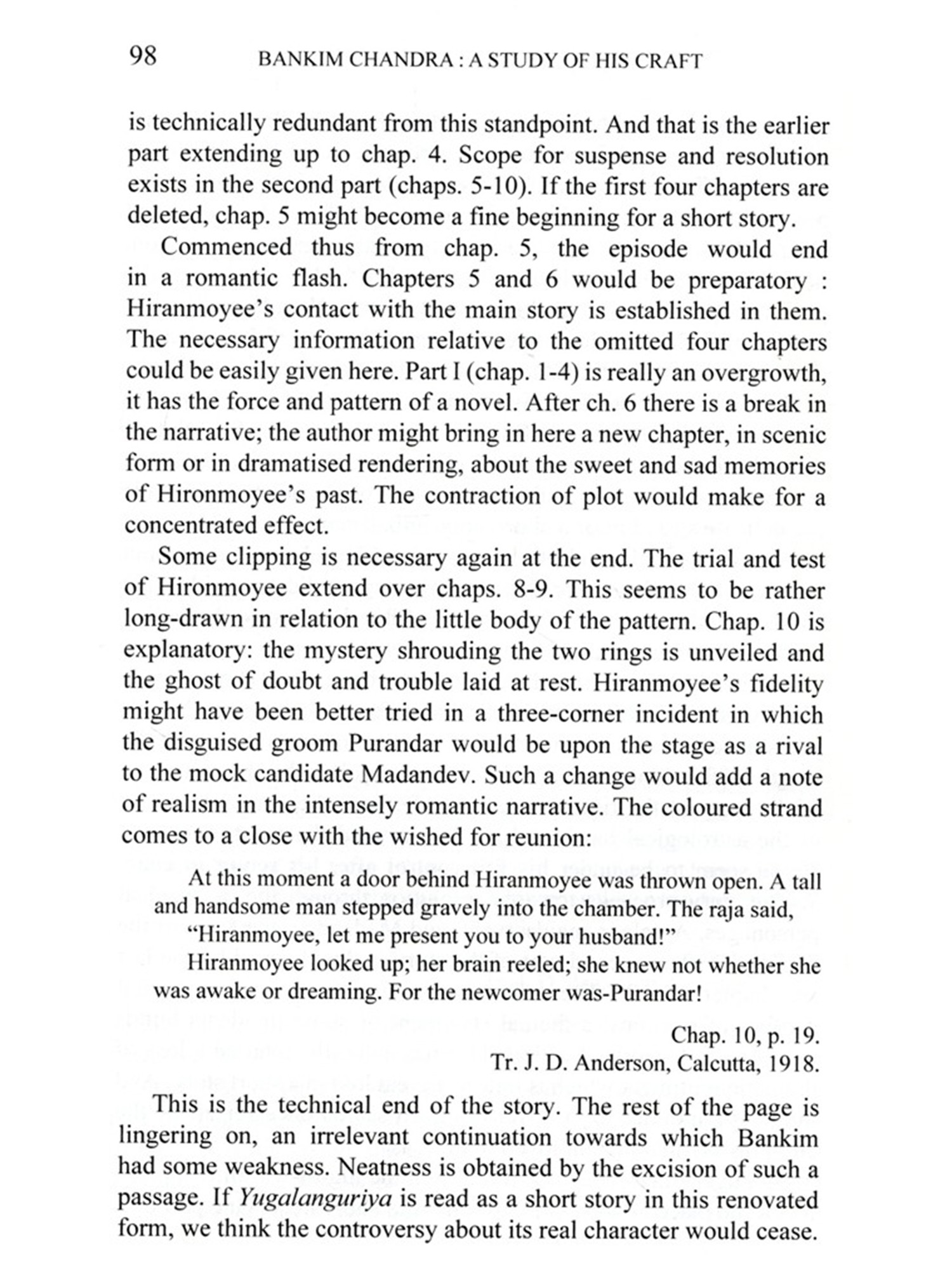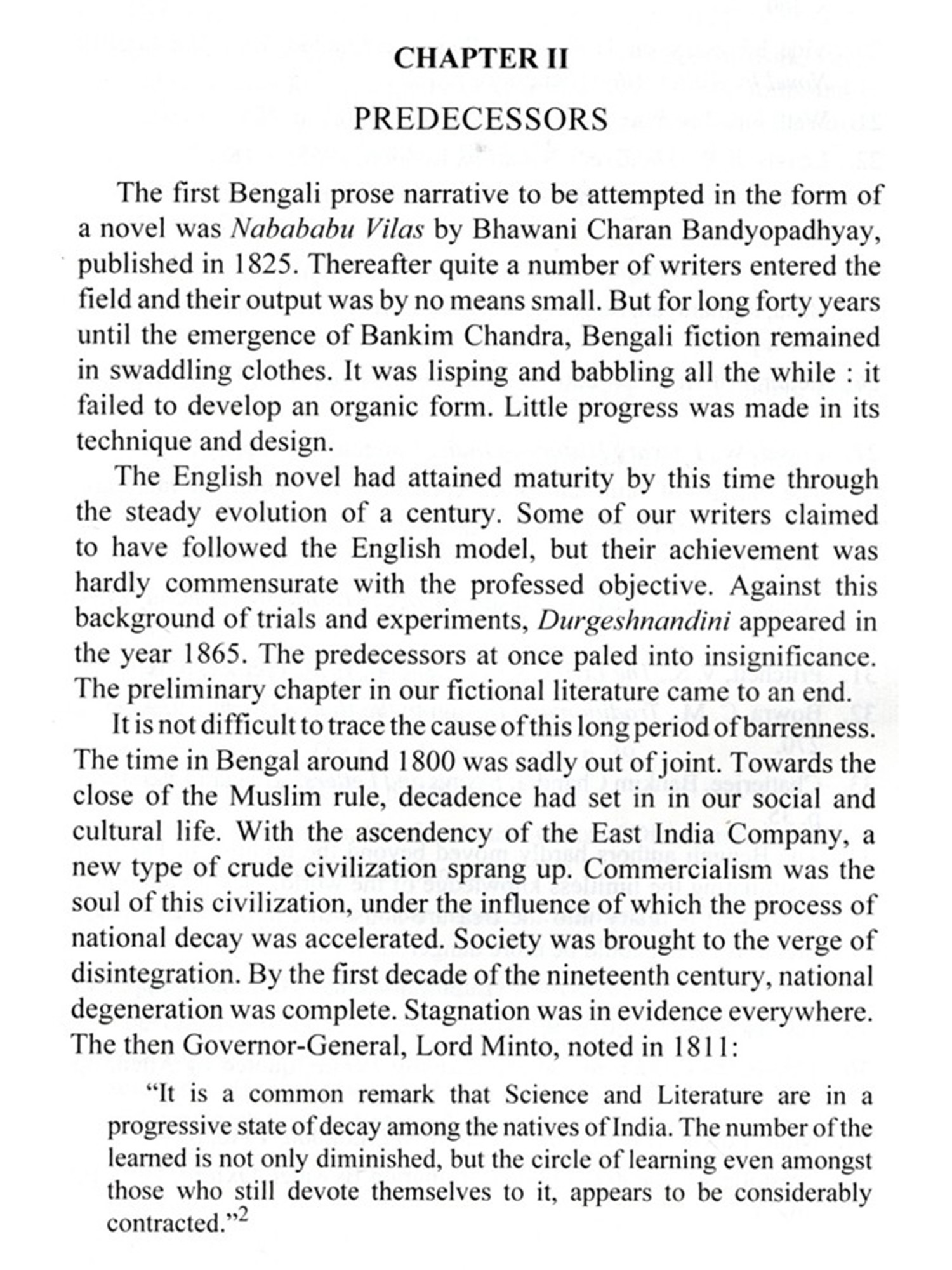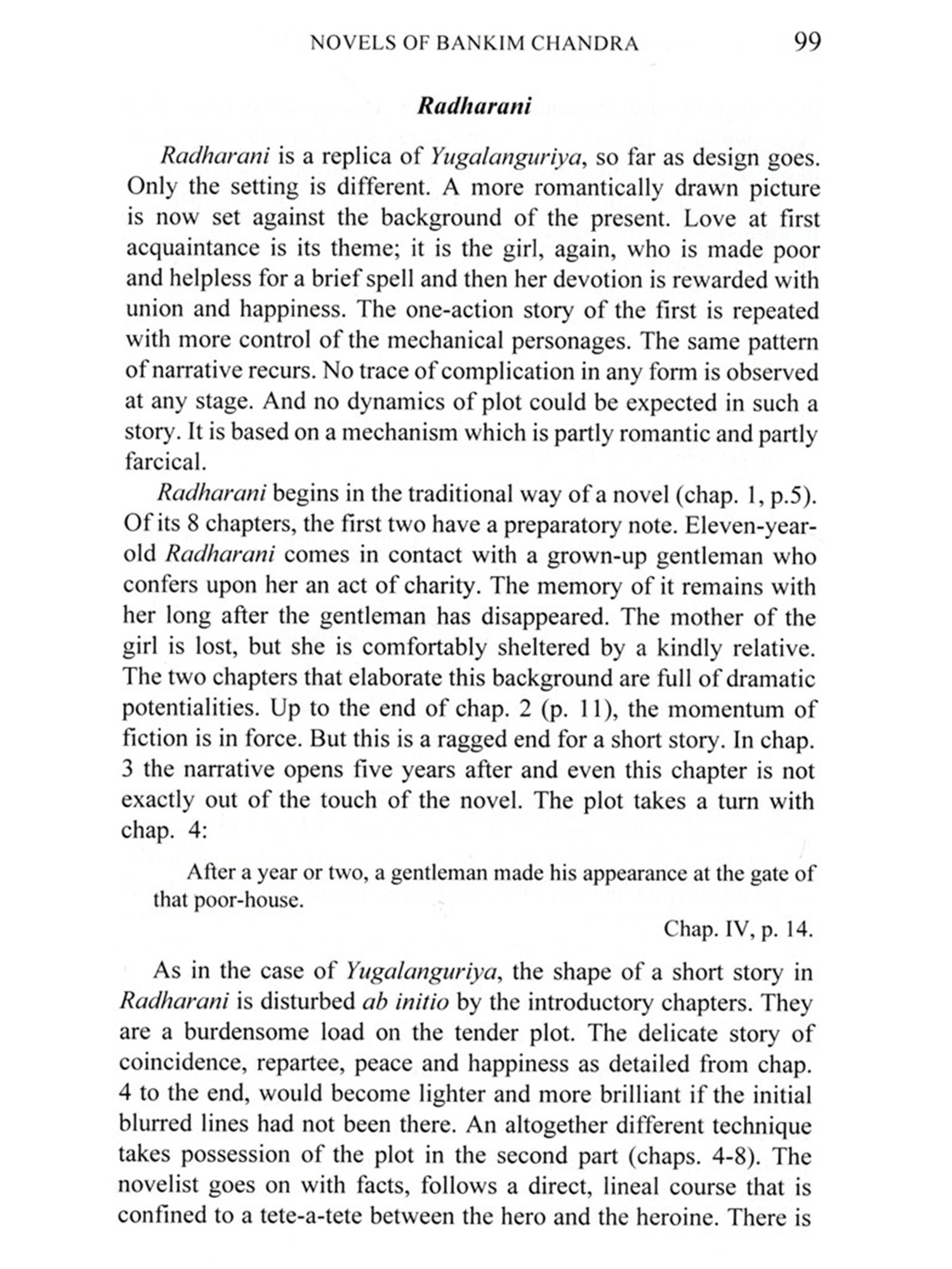 Professor Nihar Ranjan Roy rightly says in the Foreword of this book 'the author has adopted the latest western pattern of judgement which is normative and scientific: he has sought to study perhaps the most significant of the creative writers of nineteenth century Bengali literature, Bankim Chandra Chatterjee, from the angle of his craft of fiction. No doubt this is a classic work in the field of criticism on the literature of Bankim Chandra Chattopadhyay.
