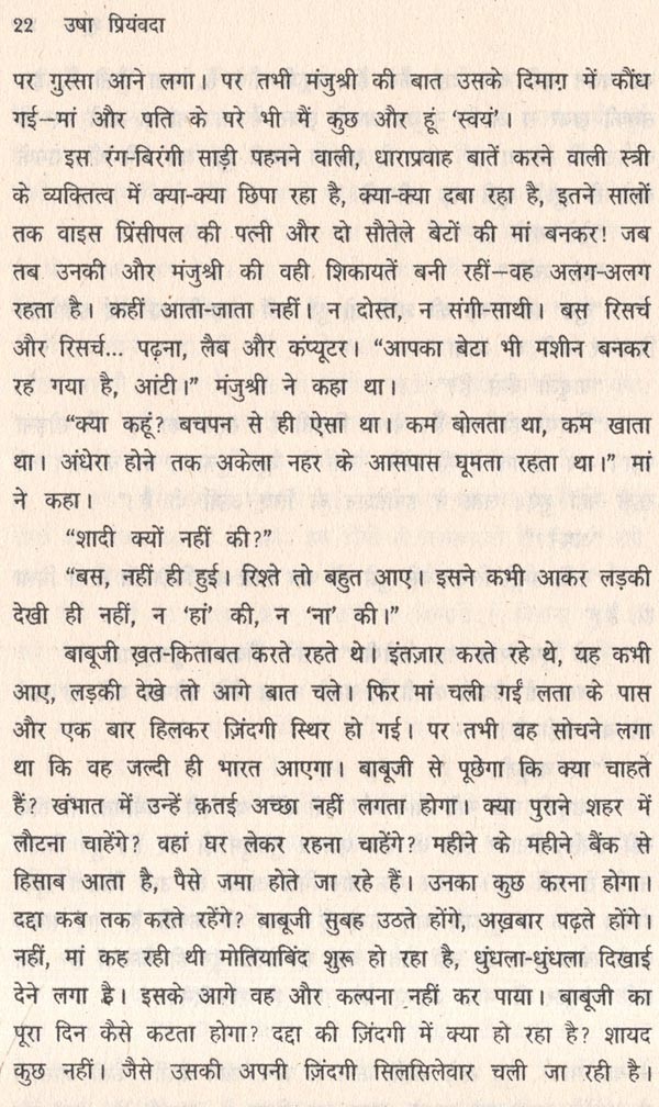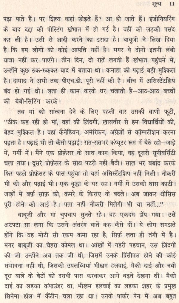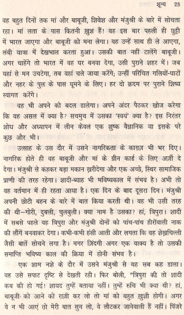 'बनवास', 'एक और बिदाई' मैंने अमेरिका प्रवास के प्रथम वर्ष में लिखीं, जिनमें एक संस्कारग्रस्त भारतीय स्त्री के मन और विचारों का पश्चिमी सभ्यता और संस्कृति से टकराव स्पष्ट है। 'शून्य' मेरी कथा यात्रा का चरम बिंदु है। पुरुष प्रधान होते हुए भी यह कहानी मेरे मन के बहुत निकट है; क्योंकि इसे मैंने अपनी मां श्रीमती प्रियंवदा देवी के देहांत के बाद लिखा था। बहुत तटस्थ स्वर रखते हुए भी उन पंक्तियों में कहीं मेरा अपना दुख छलक आया था।