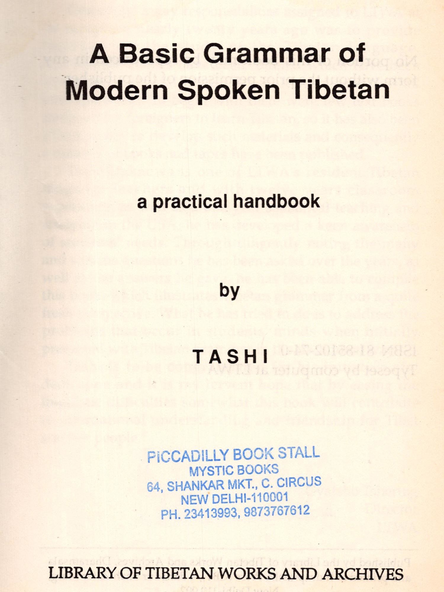 A Basic Grammar of Modem Spoken Tibetan is written for those non-Tibetan who have a keen interest in learning the proper rules of spoken Tibetan grammar. This book is based on my twelve years of experience in teaching Tibetan language at the Library of Tibetan Works and Archives, Dharamsala and one year teaching and studying in the U.S.A. During these years I have collected several notes which express the common grammatical problems of Tibetan language students. In this book I have tried to present the grammar rules as clearly as possible with a number of simple examples, so that it may be used by anyone who has no previous knowledge of spoken Tibetan. The English translations follow the Tibetan as closely as possible in order to help students understand both its meaning and form.