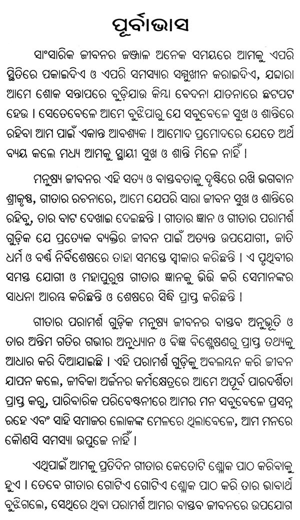 ଶ୍ରୀମଦ୍ ଭଗବତ୍ ଗୀତ ସୁଧା ନିର୍ଝର- Srimad Bhagavad Gita Sudha (Oriya)