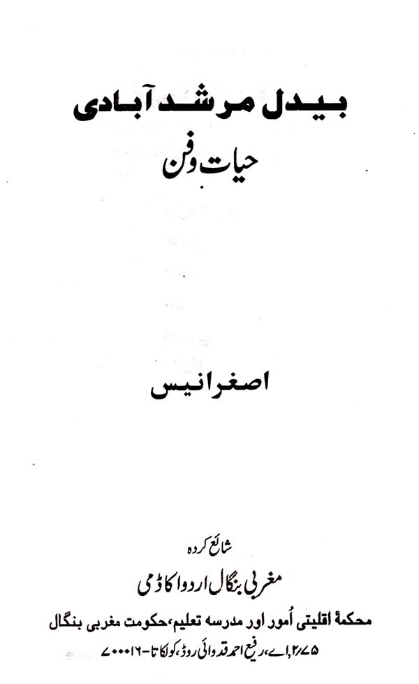 سید نواب جانی میرزا محشر مرشد آبادی: Syed Nawab Jani Meerza Mahshar Murshidabadi (Monograph in Urdu)