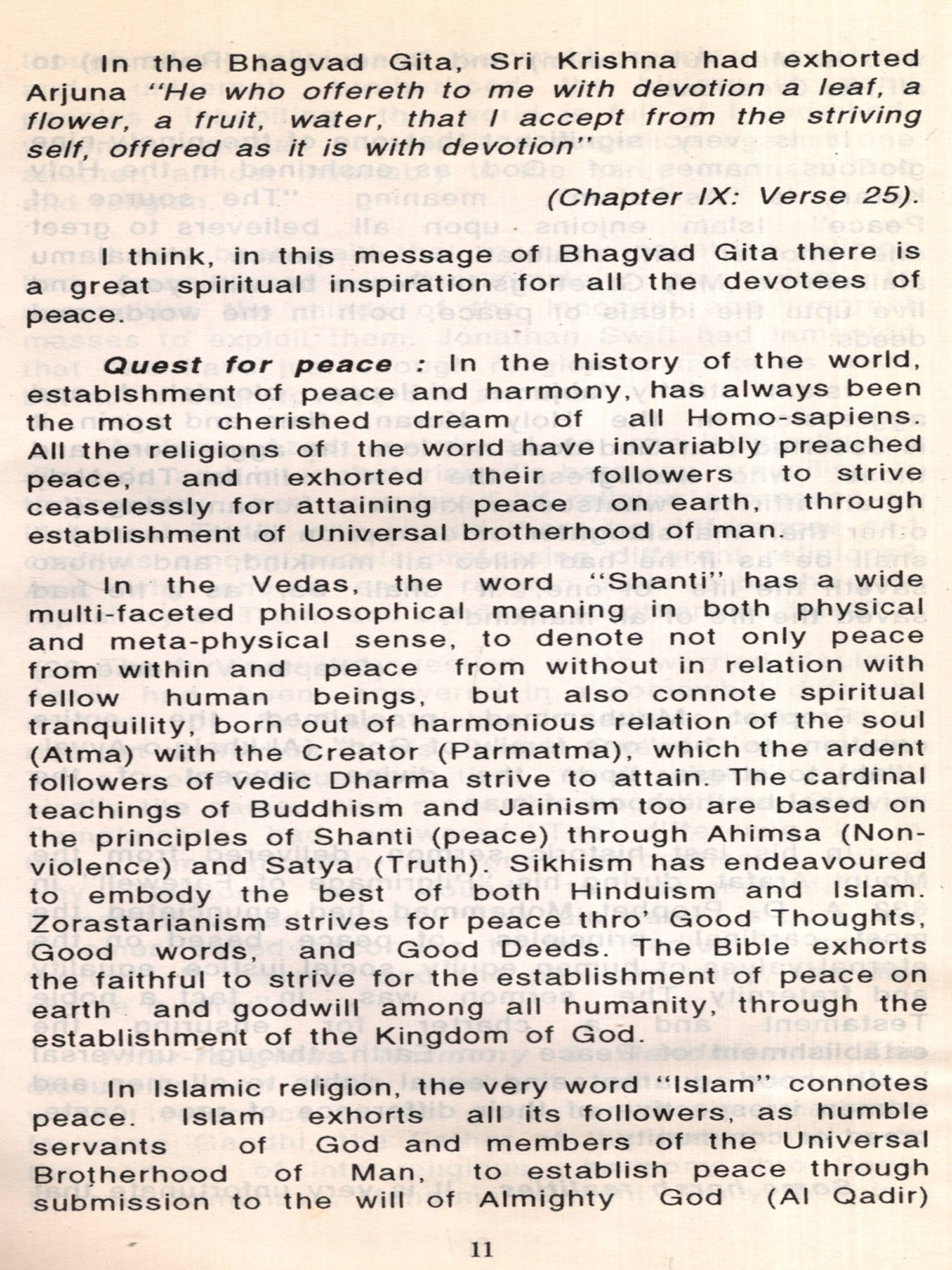 The essays on Religions and prophets give evidence not only of Dr. Hussain's knowledge, but also of his deep study of scriptures of different religions including Hinduism, Islam, Christianity and others. He has imbibed the real spirit of 'Sarva Dharma Samabhav', equal regard for all religions, as preached by Gandhiji, and the unity underlying all religions. Such writings can certainly go a long way in making people understand the real significance of Secularism.