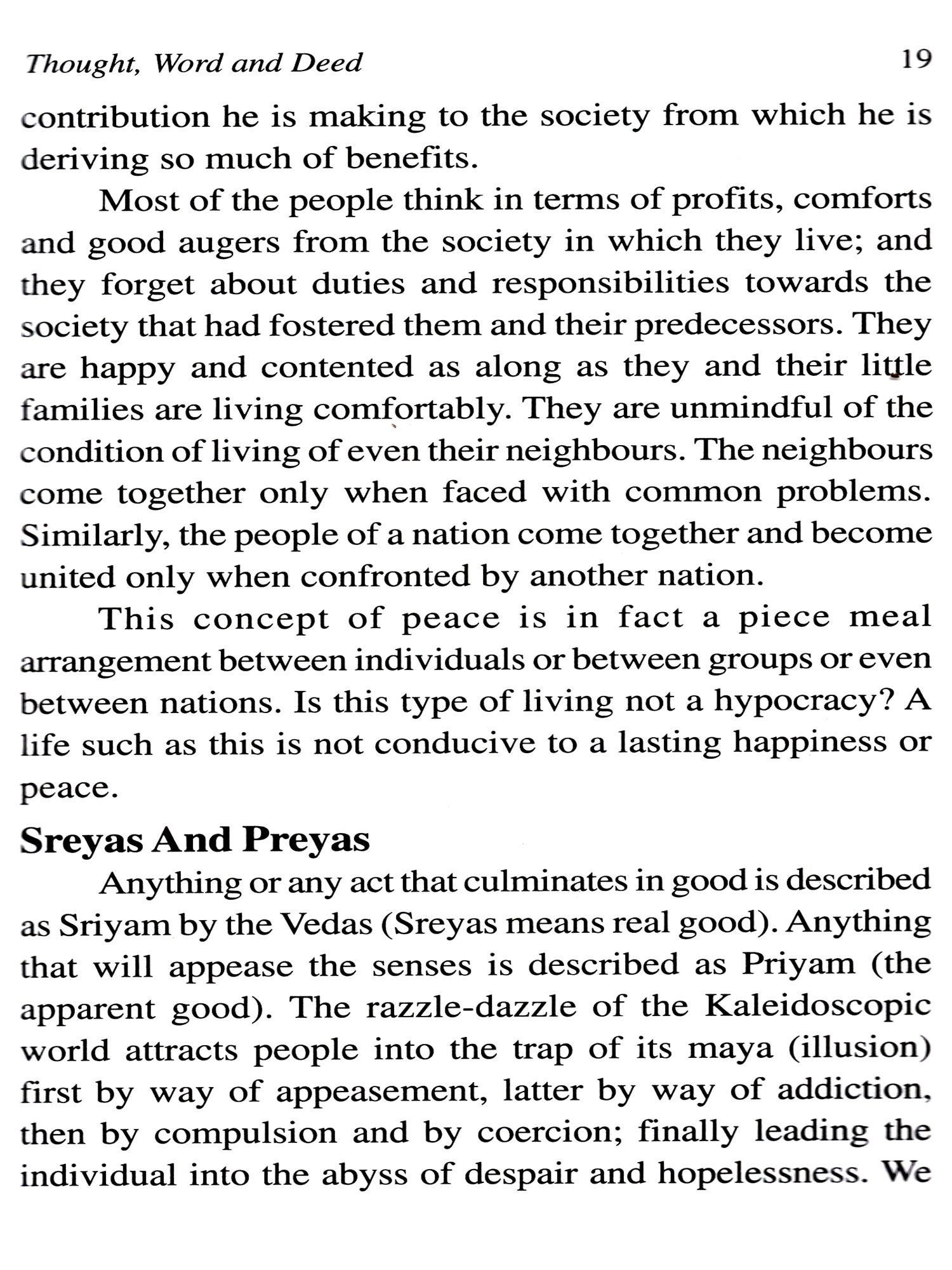 The multiplicity of deities, superstitions, gullible followings and tireless rituals are the main target of criticism and derision from the people who profess rational thinking, pragmatic approach, civilized behaviour and modern outlook. Some deeper analysis will surely lead us to the fact that these above mentioned aspects are only minor aberrations compared to the deep rooted maladies such as group, sect or community wise egoism, over enthusiastic spirit of competition, intolerance, eagerness for publicity, exaggeration of virtues, professing inherent defects as merits, and communal violence, etc.