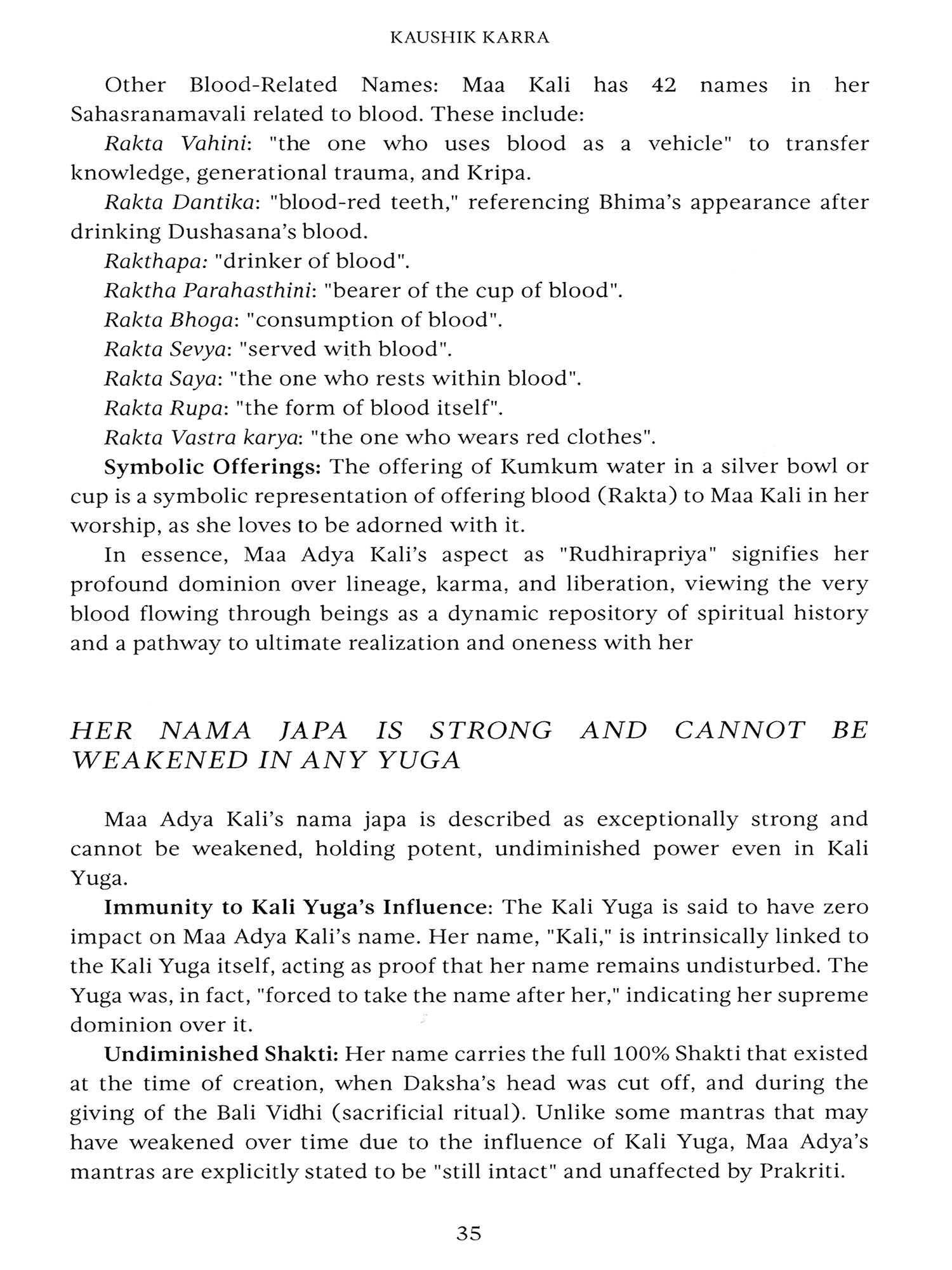 This book is a mess of dropped gems, as there is noway I can contain the knowledge that my Guruji has got from Adya Maha Kali.