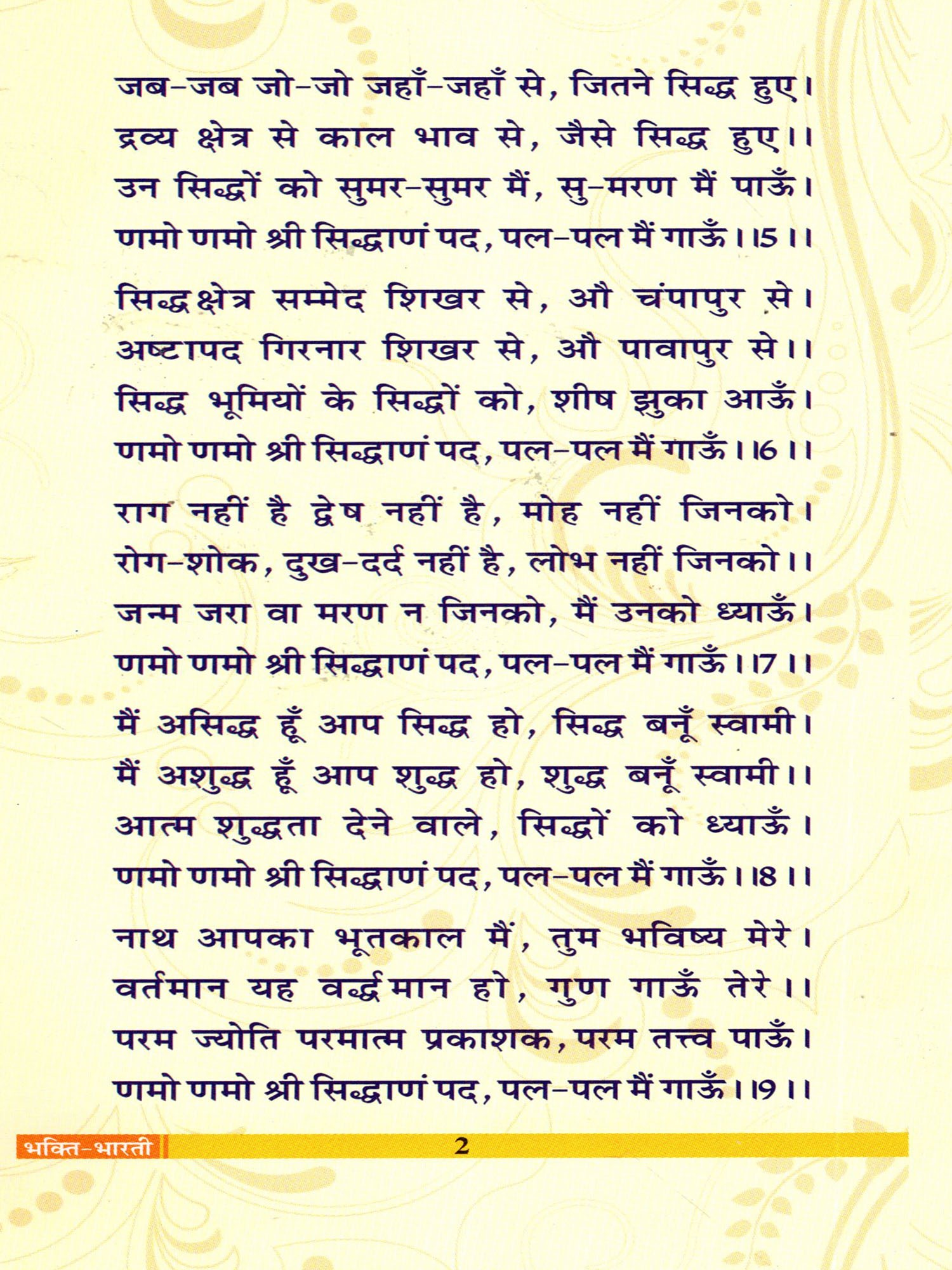 प्रस्तुत कृति भक्ति भारती में देवशास्त्र गुरु की आराधना में निःसृत बारहवर्षीय भक्ति रचनाओं का अभूतपूर्व संकलन है। यदि दर्शन विशुद्धि के साथ इन भक्ति रचनाओं को पढ़ा जाये तो यह बोधि समाधि परिणाम शुद्धि तथा स्वात्मोपलब्धि के साथ-साथ तीर्थङ्कर प्रकृति बंधनी होगी। "यह रचना मेरे शुभ भावों को रचने के लिए है।" इस परम मंगल भावना को हृदय में प्रतिष्ठित कर प्रत्येक रचनाएँ पूजा की तरह प्रतिदिन अनेक बार पढ़ें।