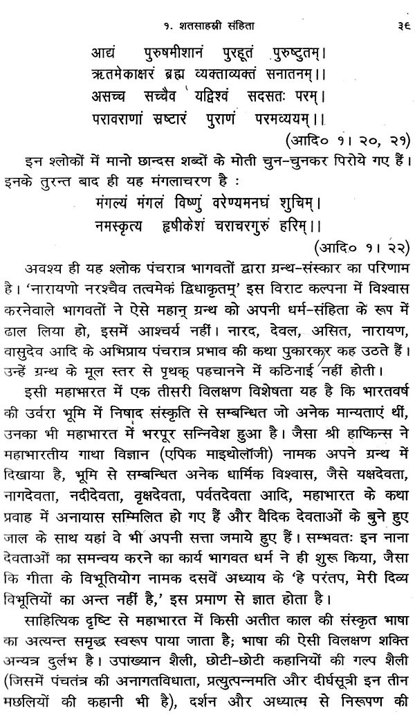 महाभारत की पाठ-परम्परा में इसके कई संस्करण सम्भावित ज्ञात होते हैं। उनमें से एक शुंगकाल में और दूसरा गुप्तकाल में सम्पन्न हुआ जान पड़ता है। इनमें भी पिछले संस्करण में पंचरात्र भागवतों ने बहुत-सी नई सामग्री अपने अभिनव दृष्टिकोण के अनुसार यथास्थान सन्निविष्ट कर दी थी। उसकी ओर भी प्रस्तुत अध्ययन में ध्यान दिलाया गया है। जीवन और धर्म के विषय में भागवतों का जो समन्वयात्मक शालीन दृष्टिकोण था, उससे महाभारत के कथा-प्रसंगों में नई शक्ति और सरसता भर गई है। भागवतों का विशेष आग्रह धर्म के उस स्वरूप पर था, जिससे समाज की प्रतिष्ठा गृहस्थाश्रम की महिमा प्रख्यात होती है। प्रायः भागवत दर्शन प्राचीन प्रज्ञावाद और ब्रह्मवाद का ही एक नूतन संस्करण था।