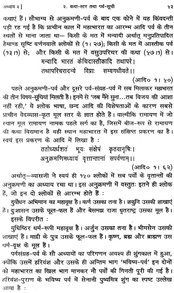 पूना से महाभारत का जो संशोधित संस्करण प्रकाशित हुआ है, उस पाठ को आधार मानकर यह विवेचन किया गया है। जहां सम्भव था, वहां यह सूचित करने का भी प्रयत्न किया गया है कि महाभारत के पाठ-विकास की परम्परा में कौन-सा अंश मौलिक और कौन-सा मूल के उपबृंहण का परिणाम था। इसमें दो विशेषताओं की ओर ध्यान दिलाया जा सकता है। एक तो, जहां किसी प्रकरण या आख्यान के अन्त में फलश्रुति का उल्लेख हुआ है, वह अंश उपबृंहण का फल माना गया है। दूसरे, जहां किसी कथांश को एक बार संक्षेप में कहकर पुनः उसी को विस्तार से सुनने या कहने की प्रार्थना की गई है, वह अंश भी प्रायः उपबृंहण या पाठ-विस्तार का ही परिणाम था। प्रायः जनमेजय पूछते है, "भगवन्, मैं इसे अब विस्तार से सुनना चाहता हूं।" (विस्तरेणैतदिच्छामि कथ्यमानं त्वया द्विज, सभा० ४६। ३)। और उत्तर में वैशम्पायन कहते हैं, "हे भारत, अब इसी कथा को मैं विस्तार से सुनाता हूं।" (शृणु मे विस्तरेणेमां कां भरतसत्तम। भूय एव महाराज यदि ते श्रवणे मतिः ।। सभा० ४६ । ५)। विस्तार से फिर सुनाने की बात जहां है, वहां स्पष्ट ही वह पुनरुक्ति है, जैसाकि इसी के आगे सभा पर्व के ४६, ४७ और ४८ अध्यायों की भौगोलिक और सांस्कृतिक सामग्री को देखने से प्रकट होता है। इसी प्रकार सभा पर्व के २३ वें अध्याय में चारों दिशाओं की विजय संक्षेप में सुनने के बाद जनमेजय ने पूछा, "हे ब्रह्मन् ! अब दिशाओं की विजय विस्तार से कहिये, क्योंकि पूर्वजों का महान् चरित्र सुनते हुए मेरी तृप्ति नहीं होती।" (दिशामभिजयं ब्रह्मन्विस्तरेणानु कीर्तय । न हि तृप्यामि पूर्वेषां शृण्वानश्वरितं महत् ।। सभा० २३।११)। फलस्वरूप इसके बाद के सात अध्यायों में दिग्विजय का विस्तृत वर्णन है।