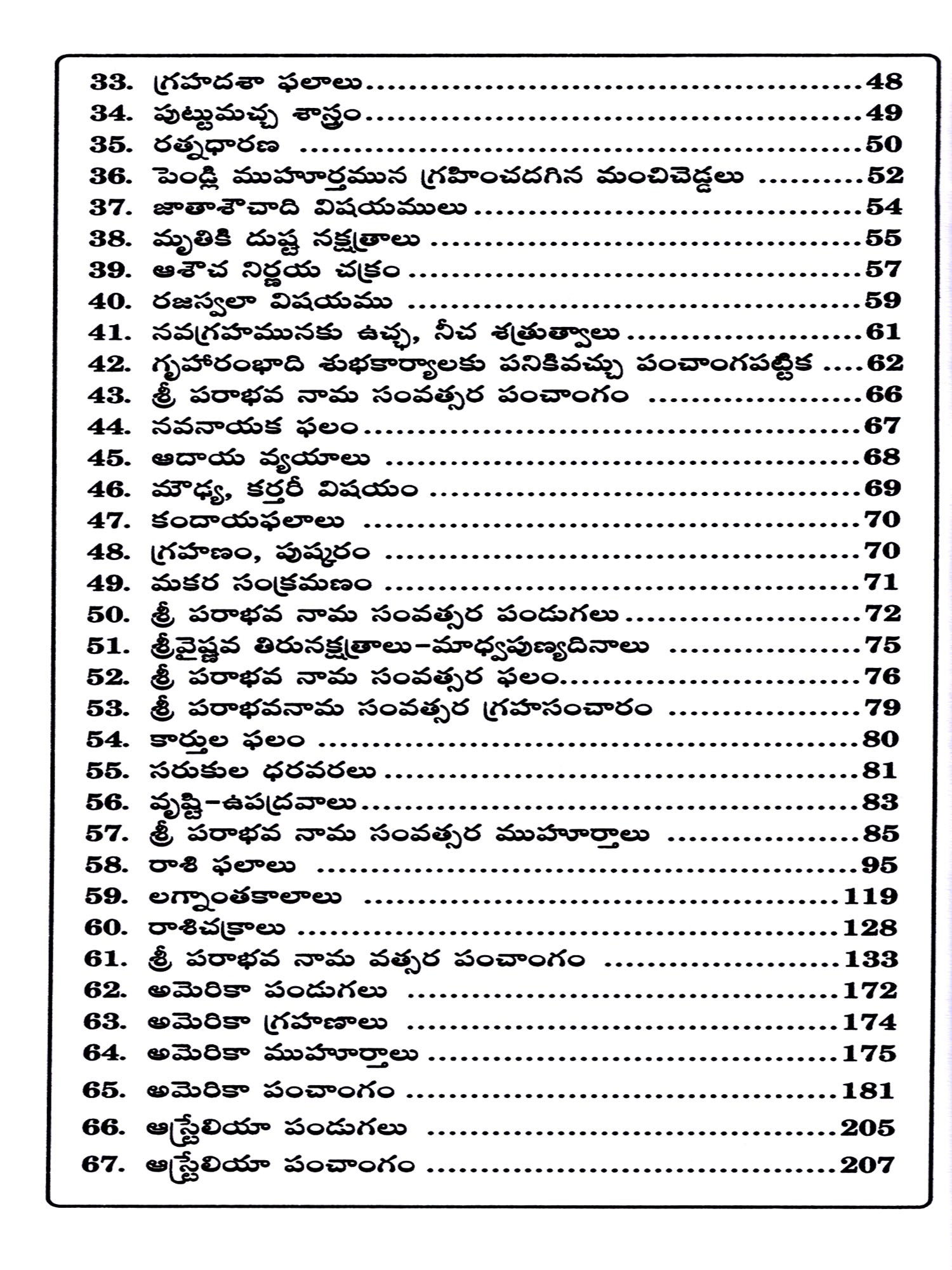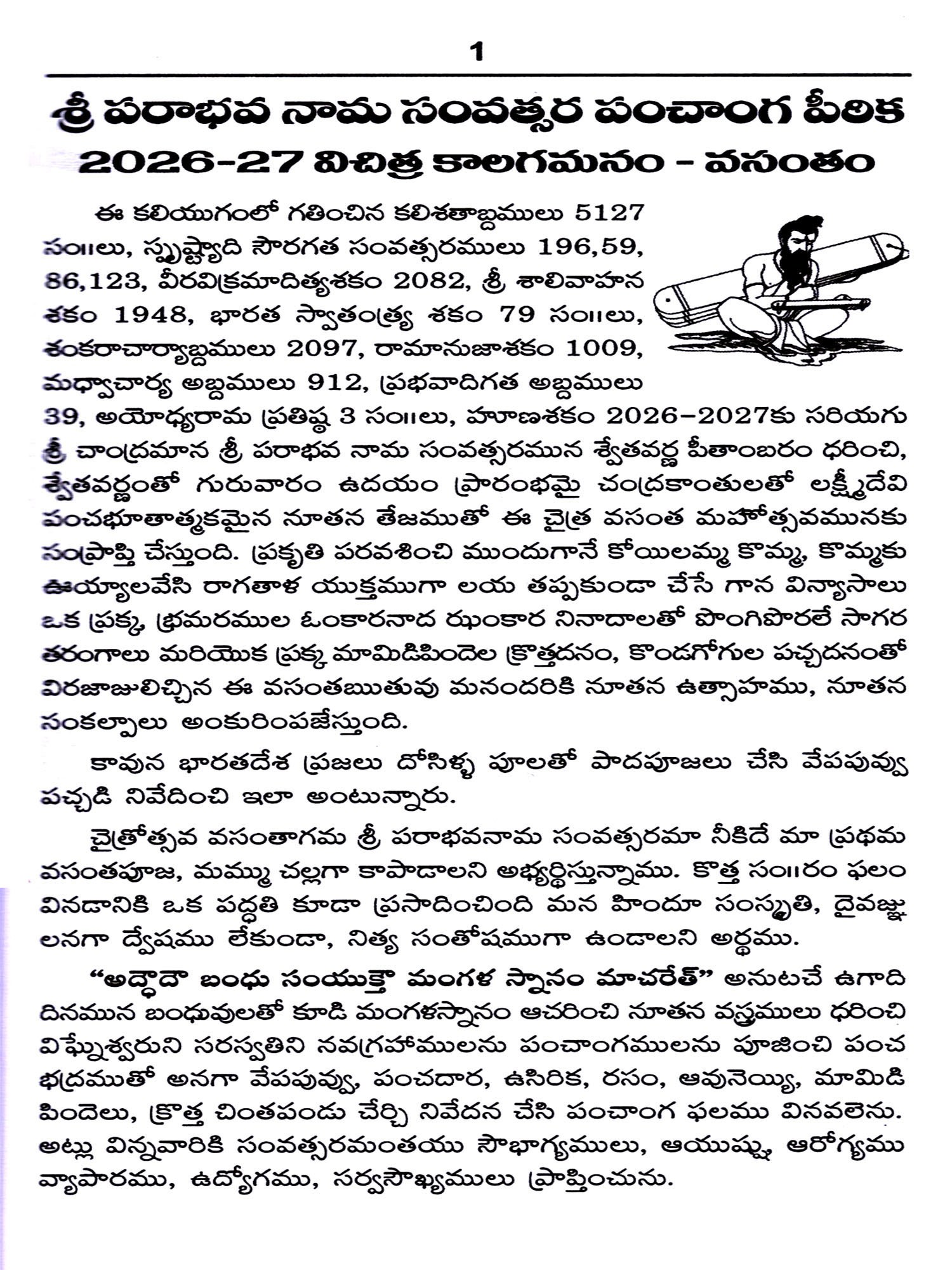 శ్రీ పరాభవ నామ సంవత్సర చాంద్రమాన గంటల పంచాంగము: Sri Parabhava Nama Samvatsara Ghadiyala Gantala Panchangam 2026-27 (Telugu)