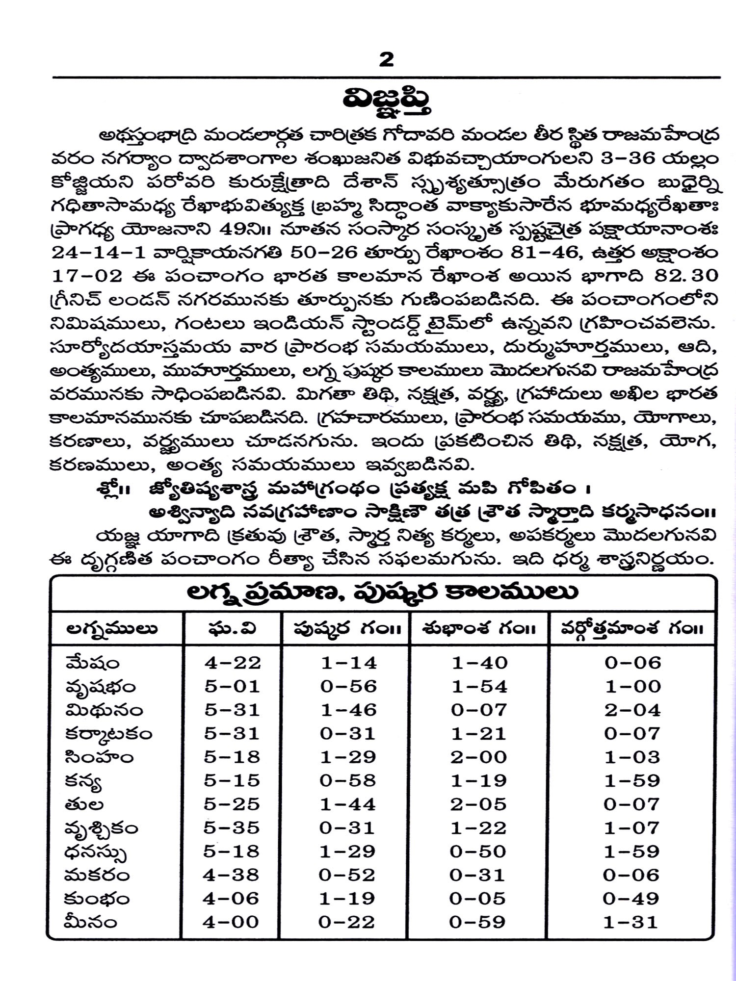 శుభతిథి గంటల పంచాంగము- Subhatidhi Gantala Panchangam 2024-2025 (Telugu)