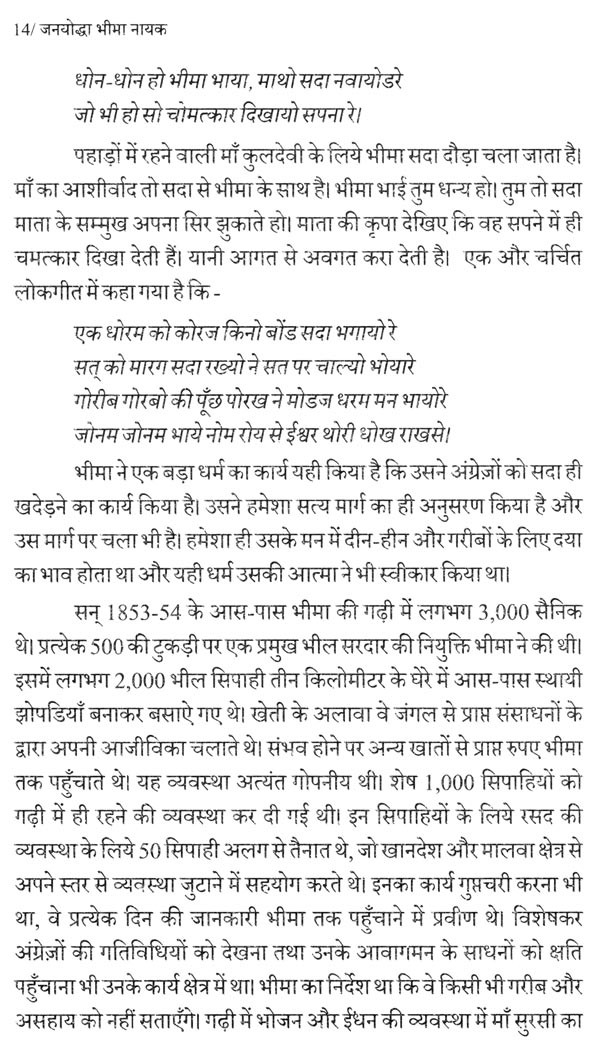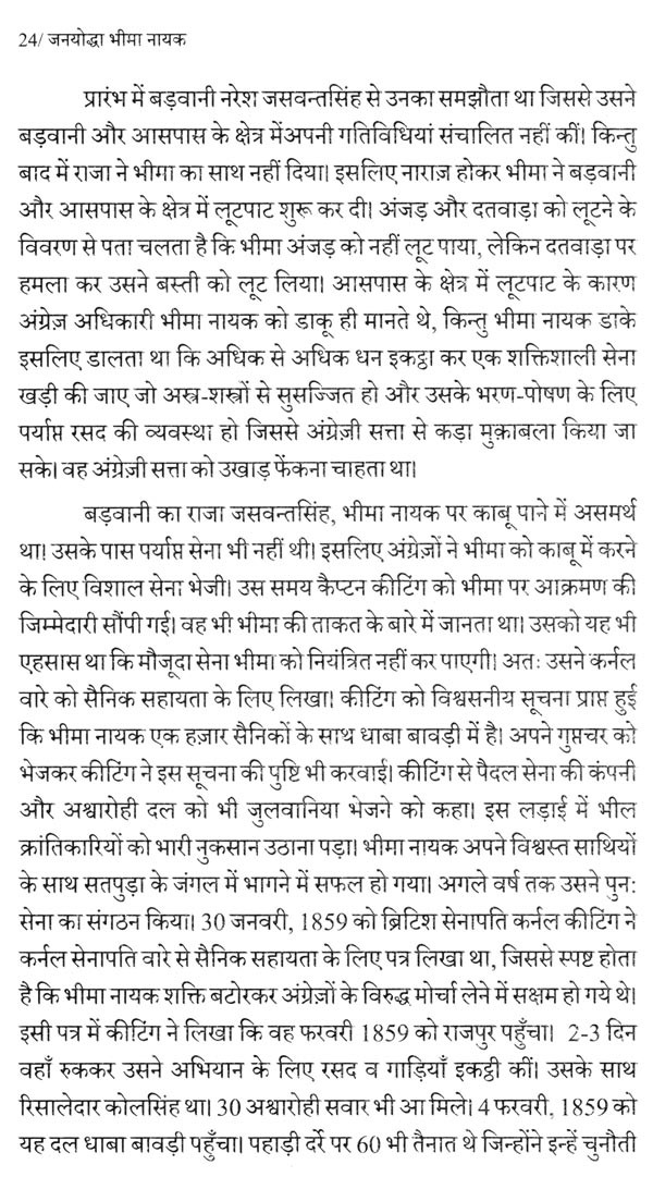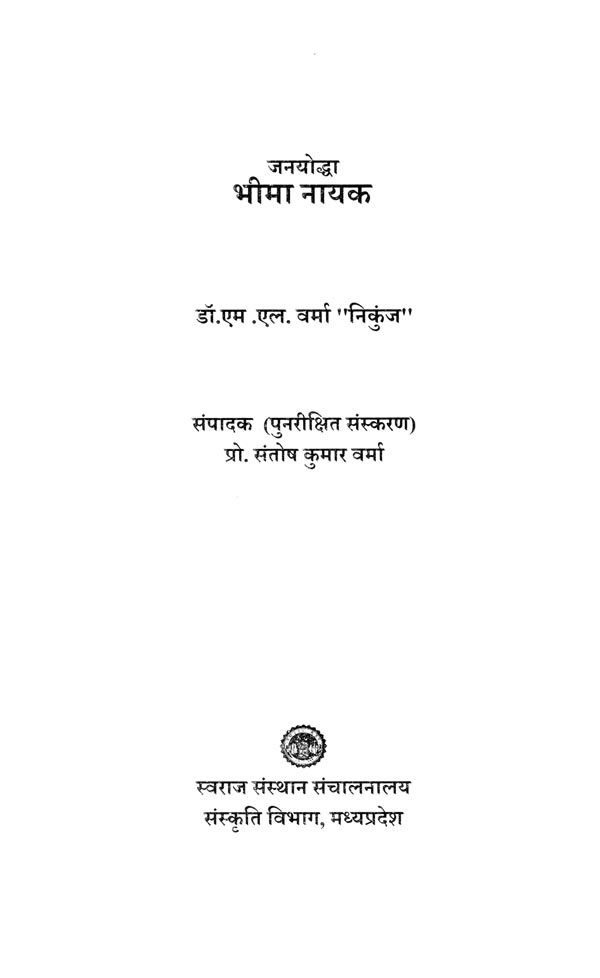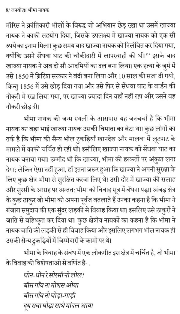 इतिहास विद् डॉ. शिव नारायण यादव ने भीमा पर "निमाड़ का योद्धा भीमा नायक" नाम से बाईस पृष्ठीय एक पुस्तिका का प्रकाशन किया। तत्कालीन समय काल और परिस्थितियों का यह जीवंत दस्तावेज़ भीमा के अनगिनत संघर्ष, जो अंग्रेज़ों के विरुद्ध थे, पढ़कर लगा, इस महान सेनानी को आज तक इतिहास के वृहद् पन्नों पर क्यों नहीं रखा गया? मगर उल्लासित हुआ जब ज्ञात हुआ कि मध्यप्रदेश स्वराज संस्थान 1857 के क्रांतिकारियों पर शोध करने के लिए फैलोशिप दे रहा है। मैंने आवेदन किया और संस्थान ने भीलांचल निमाड़ का स्वतंत्रता संग्राम सेनानी भीमा नायक पर शोध के लिए अनुमति दे दी।