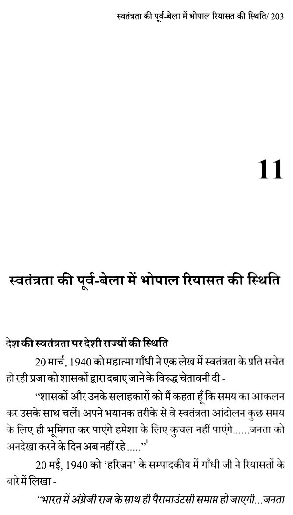 या जाये। मुझमें बल होगा तो मैं देशी राजाओं के जुल्म के खिलाफ और अंग्रेजी जुल्म के खिलाफ जूझंगा।" तत्कालीन समय में भोपाल एक देशी रियासत था, जिसकी जनता 'दासानुदास' थी अर्थात इसे दोहरी गुलामी भोगनी पड़ी- अंग्रेजों के साथ-साथ उनके कृतज्ञ सेवक नवाबों की भी। इसलिए यहाँ स्वतंत्रता संधर्ष और भी कठिन था। जन-आंदोलन को दबाने के सरकारी प्रयत्न लगातार होते रहे। इन्हें कुचलने के लिये जहाँ एक ओर सरकारी कानून, पुलिस, दमन और अत्याचारों का सहारा लिया जाता था, वहीं दूसरी ओर ब्रिटिश सरकार के पदचिन्हों पर चलते हुए 'विभाजन करो और शासन करो' की नीति पर भी अमल किया जाता था।