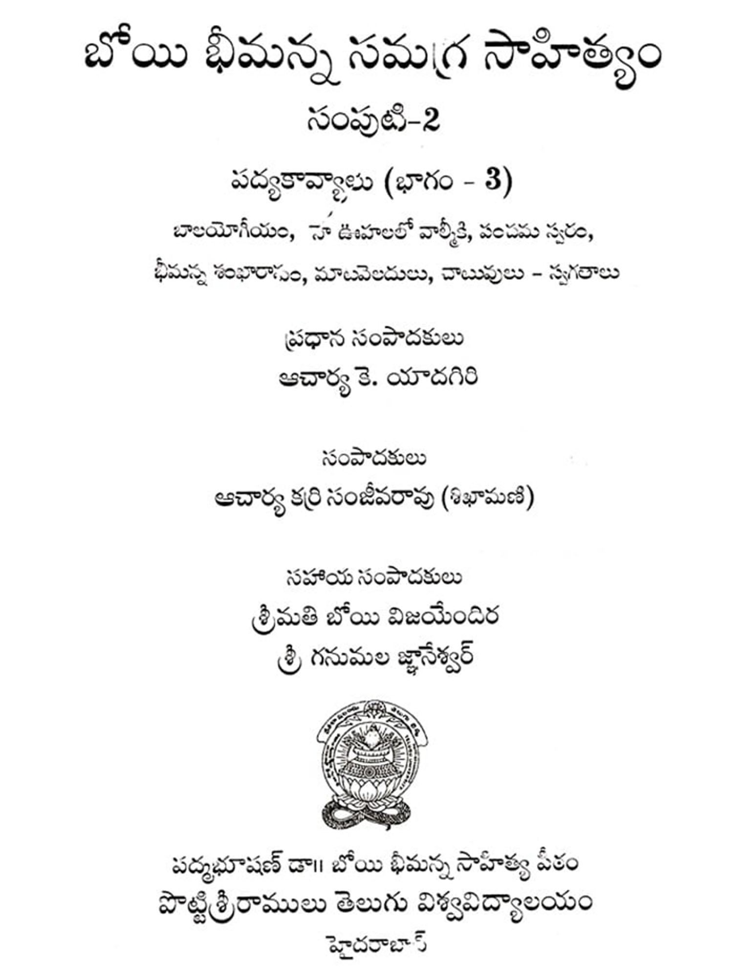బోయి భీమన్న సమగ్ర సాహిత్యం: Boyi Bhimanna Samagra Sahityam- Padyakavyalu in Telugu (Vol-2, Part-2)