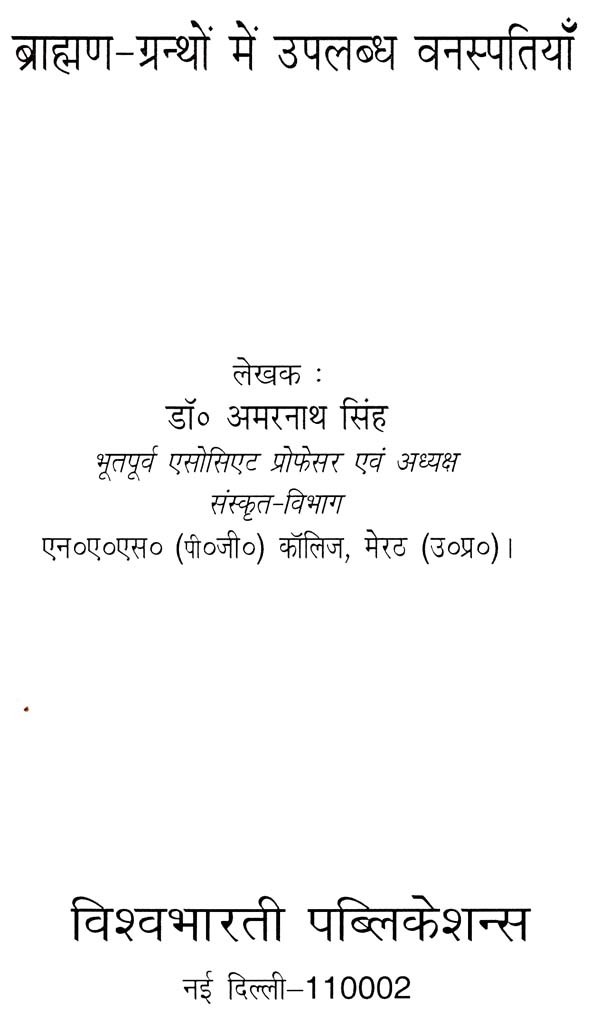 ब्राह्मण-ग्रन्थों में उपलब्ध वनस्पतियाँ: Brahman Granthon Mein Upalabdh Vanaspatiyan