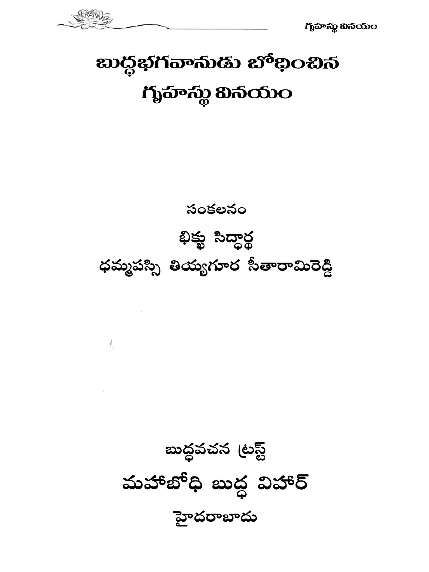 గృహస్థు శుభమంగళం- Gruhastu Subha Mangalam: Maha Mangala Suttam Taught by The Lord Buddha (Telugu)