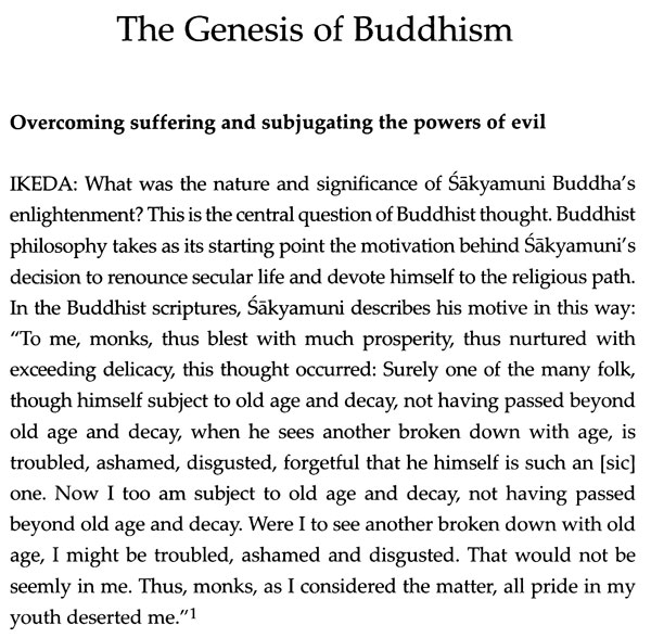 The vast mountain ranges of Eastern philosophy, dating back many centuries into the past, bask M the bright sunshine of the universe, towering heights in the history of humankind. From these majestic peaks, clear cold streams rush forth to form a great river that flows through the changes of time. And along the way, vast fertile plains are opened up, rich creations of the life spirit, brought into being through the peaceful coexistence of living beings. These, which enrich peoples' lives, which give them unlimited vigour and serve as their guidelines - these deep-flowing waterways of the spirit are what we know as humanistic thought.