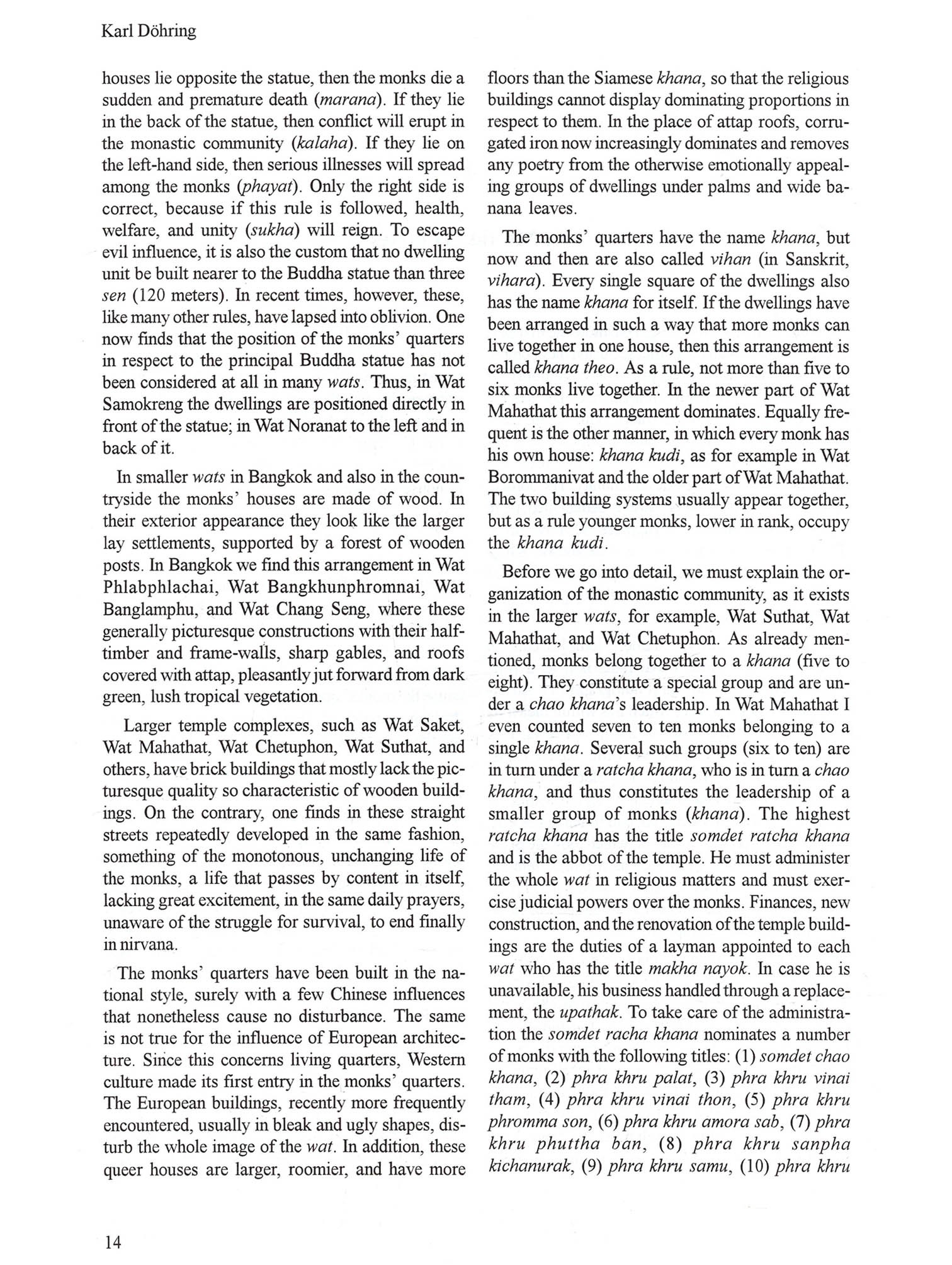 Buddhist Temples of Thailand: An Architectonic Introduction is the first English translation of Karl Döhring's seminal three-volume photographic study Buddhistische Tempelanlagen in Siam, published in German in 1920. This in-depth architectonic and socio-cultural analysis of temple building complexes is accompanied by 180 pages of technically perfect photographs and 116 floor plans and refined line drawings. Karl Döhring, an architect who lived and worked in Siam during the reigns of King Chulalongkorn and King Vajiravudh, presented part of this work toward his doctoral degree. As a practicing architect of larger constructions, many of which were realized in Siam, Döhring was deeply interested in the technical aspects of Thai temples and in the use of decorative elements worked out to perfection to create both harmony and eye-catching contrasts. The book presents an architectonic analysis, discusses the historico-cultural and religious meanings of the various edifices composing a Thai temple complex, and details the specific decorations used to project the atmosphere of religious piety and rest so often impressively present in these places of worship. Sample floor plans, many of which have been long lost and photographs of many Bangkok temples as well as some famous upcountry complexes make this book a masterfully conceived guide for the layman who has more than a superficial interest in this fascinating topic.