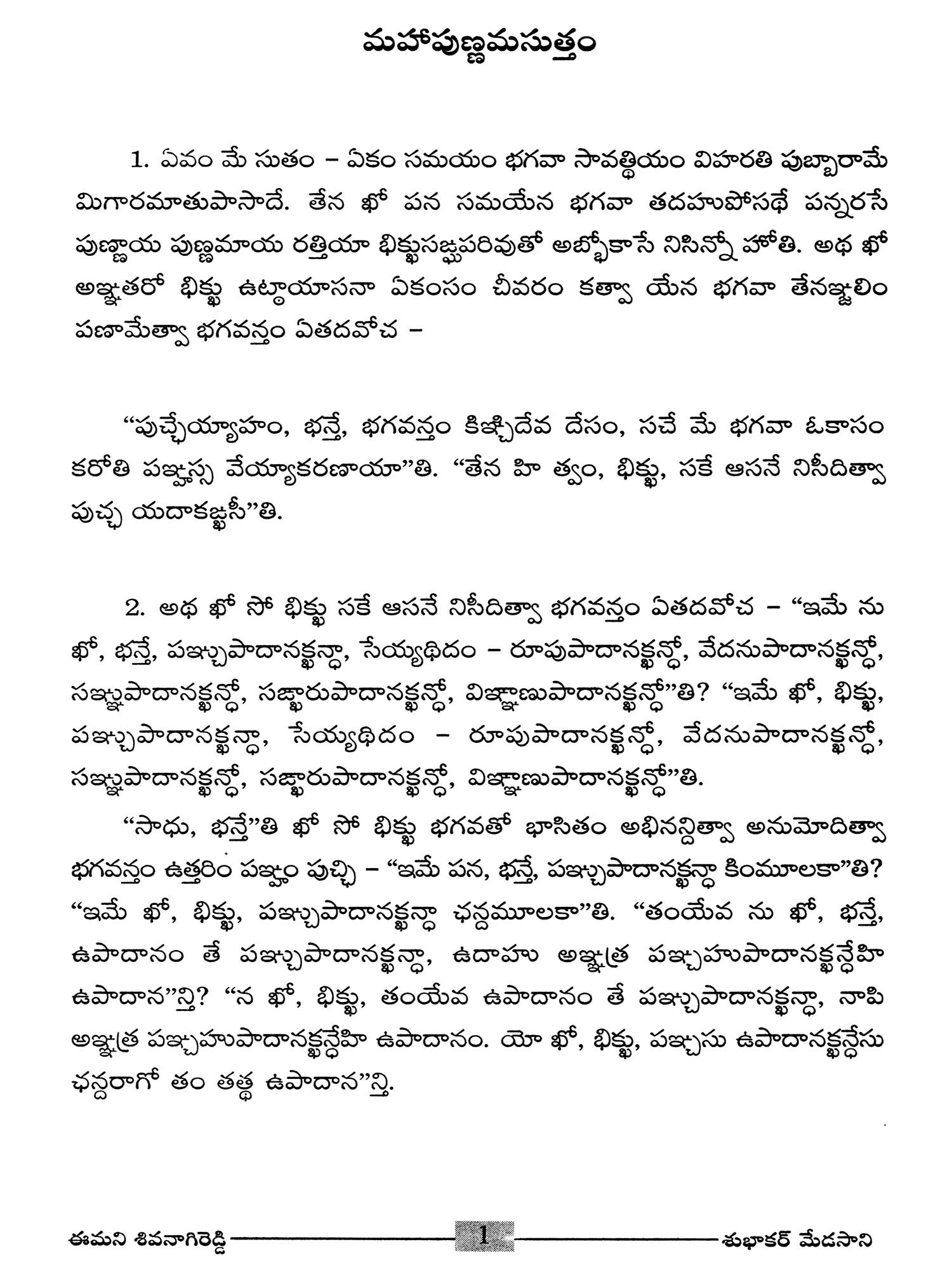 మహాస్మృతిప్రస్థాన సూత్రము: Mahasmritiprasthana Sutra (The Buddha's Great Discourse on Vipassana Meditation) Telugu