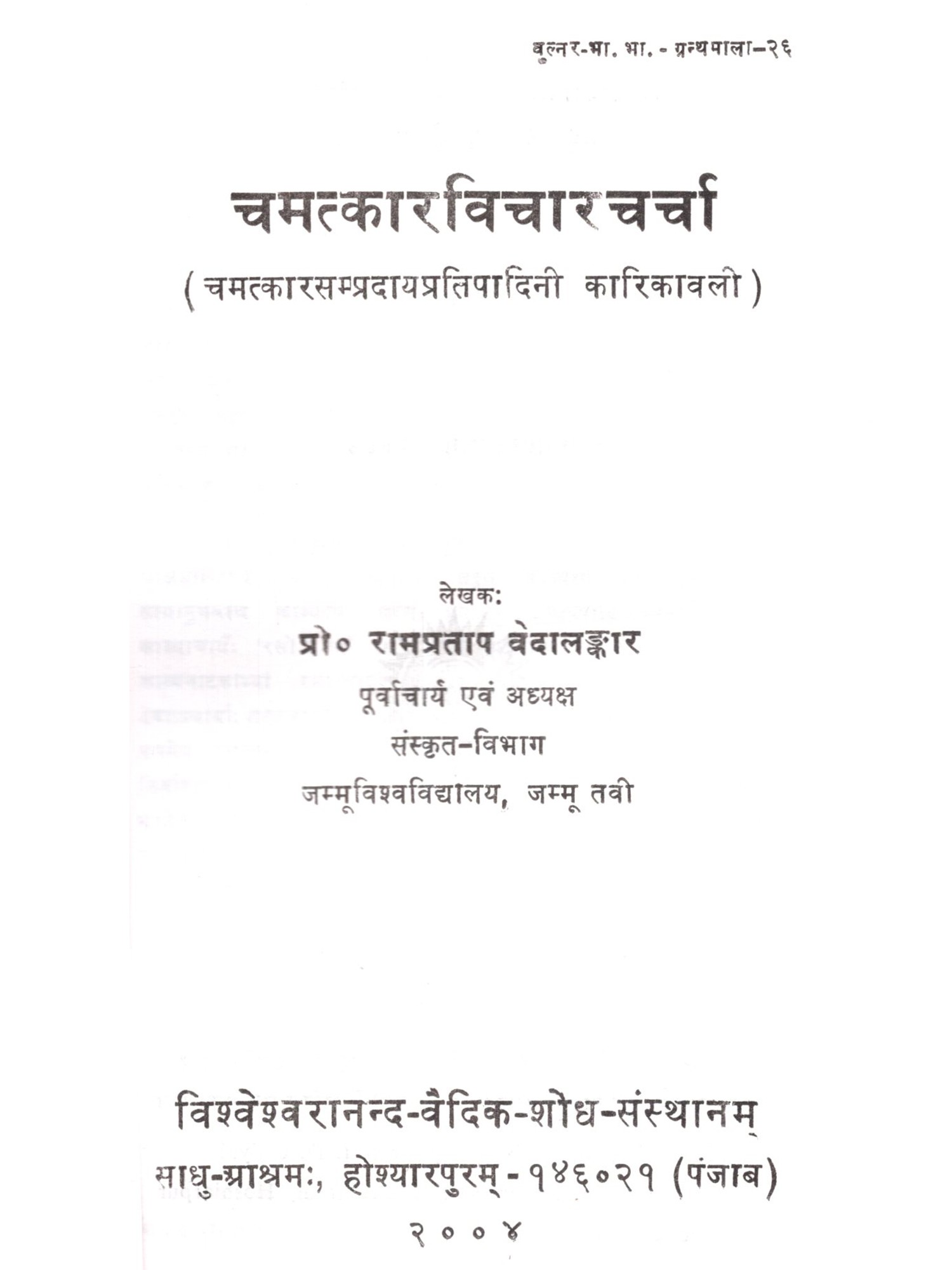 चमत्कार विचार चर्चा (चमत्कार सम्प्रदाय प्रतिपादित कारिकावली): Chamatkar Vichar Charcha (Chamatkar Sampradayein Pratipadit Karikavali)- An Old and Rare Book