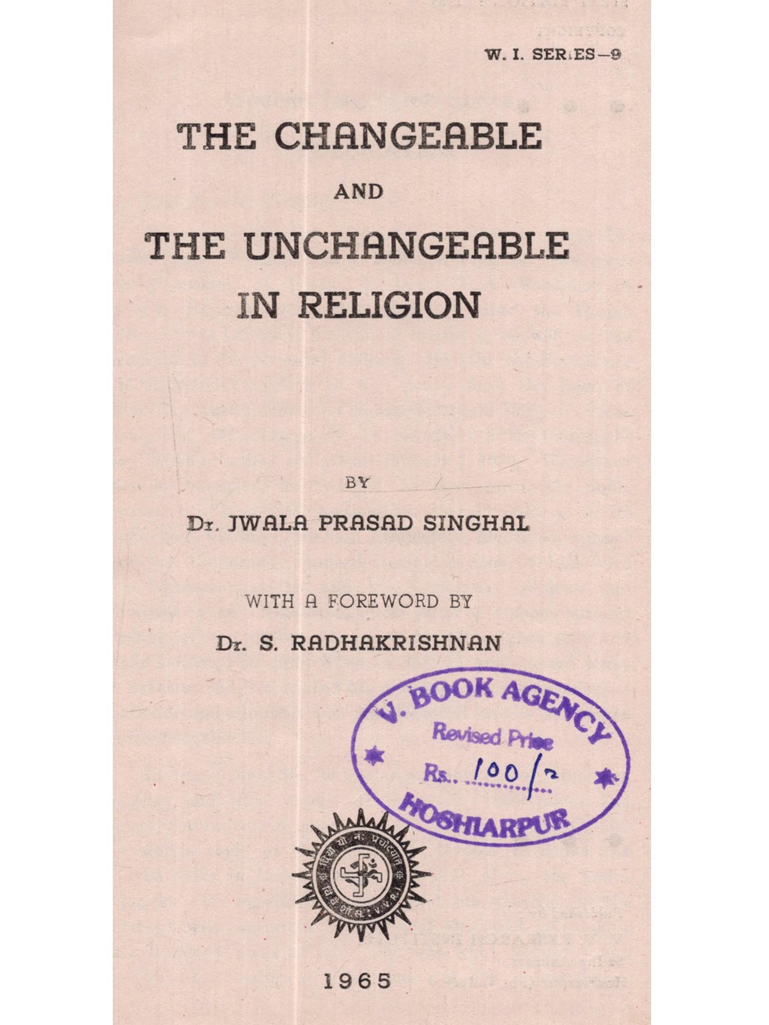 The Changeable and the Unchangeable in Religion (An Old and Rare Book)