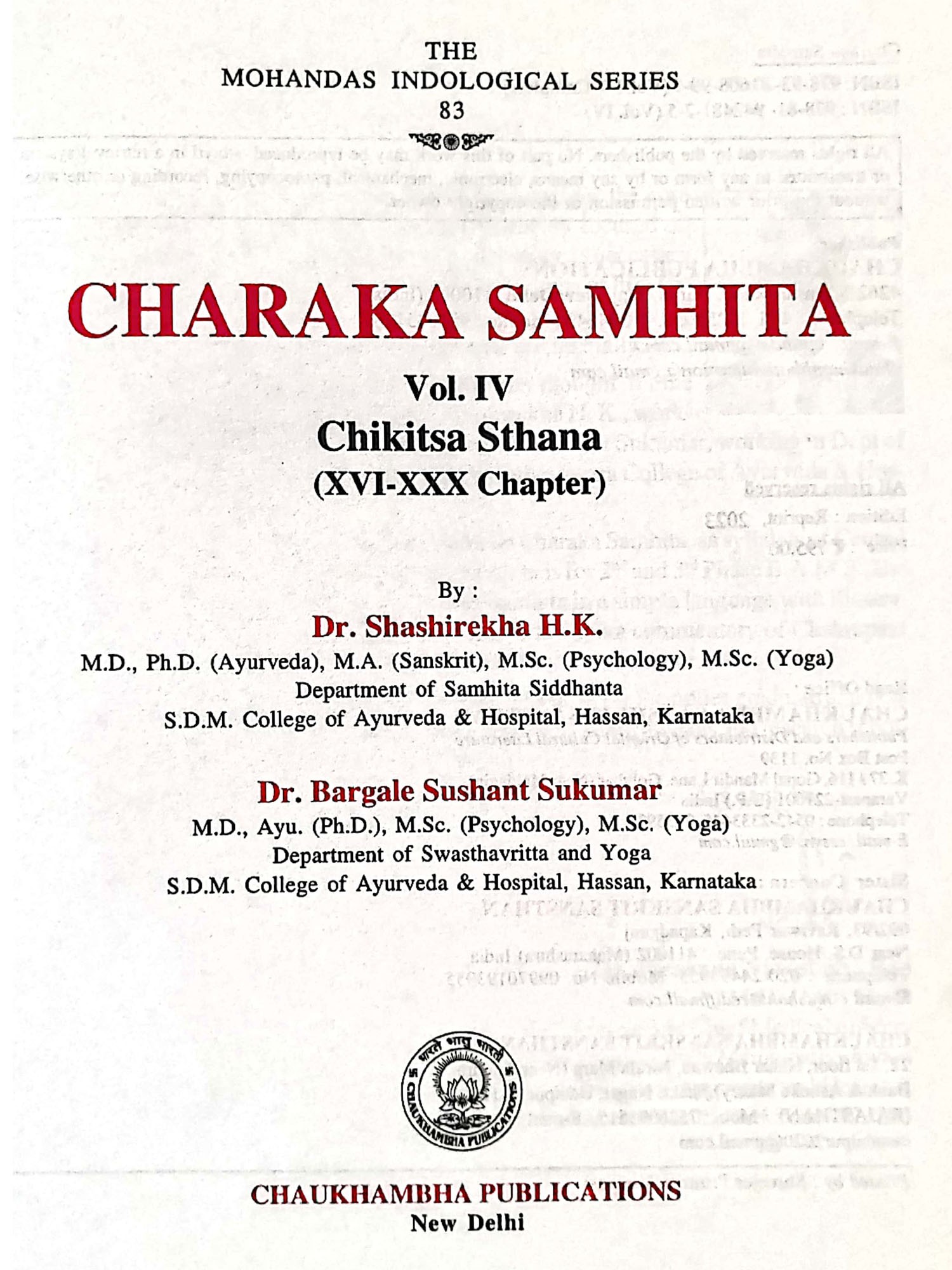Charaka Samhita: Vol-IV Chikitsa Sthana (XVI-XXX Chapter)