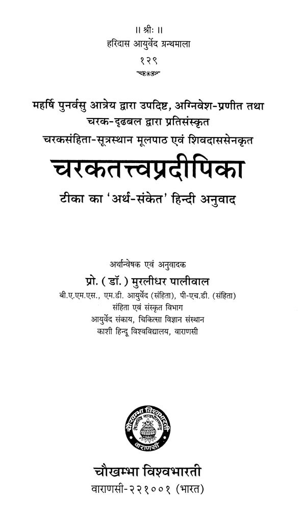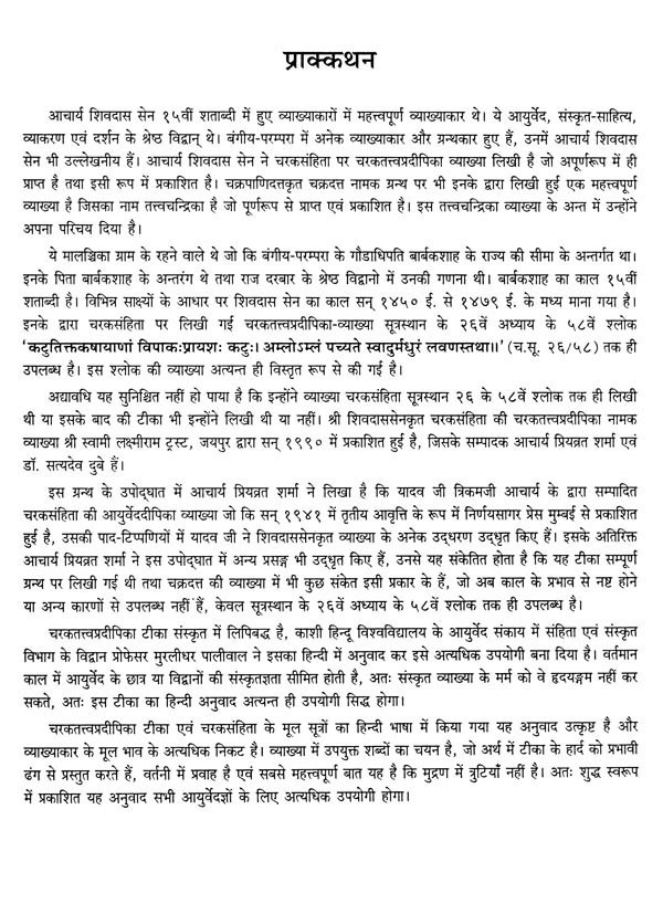 चरकतत्त्वप्रदीपिका (टिका का 'अर्थ-संकेत' हिन्दी अनुवाद)- Charaka Tattvapradipika (Hindi translation of the commentary)