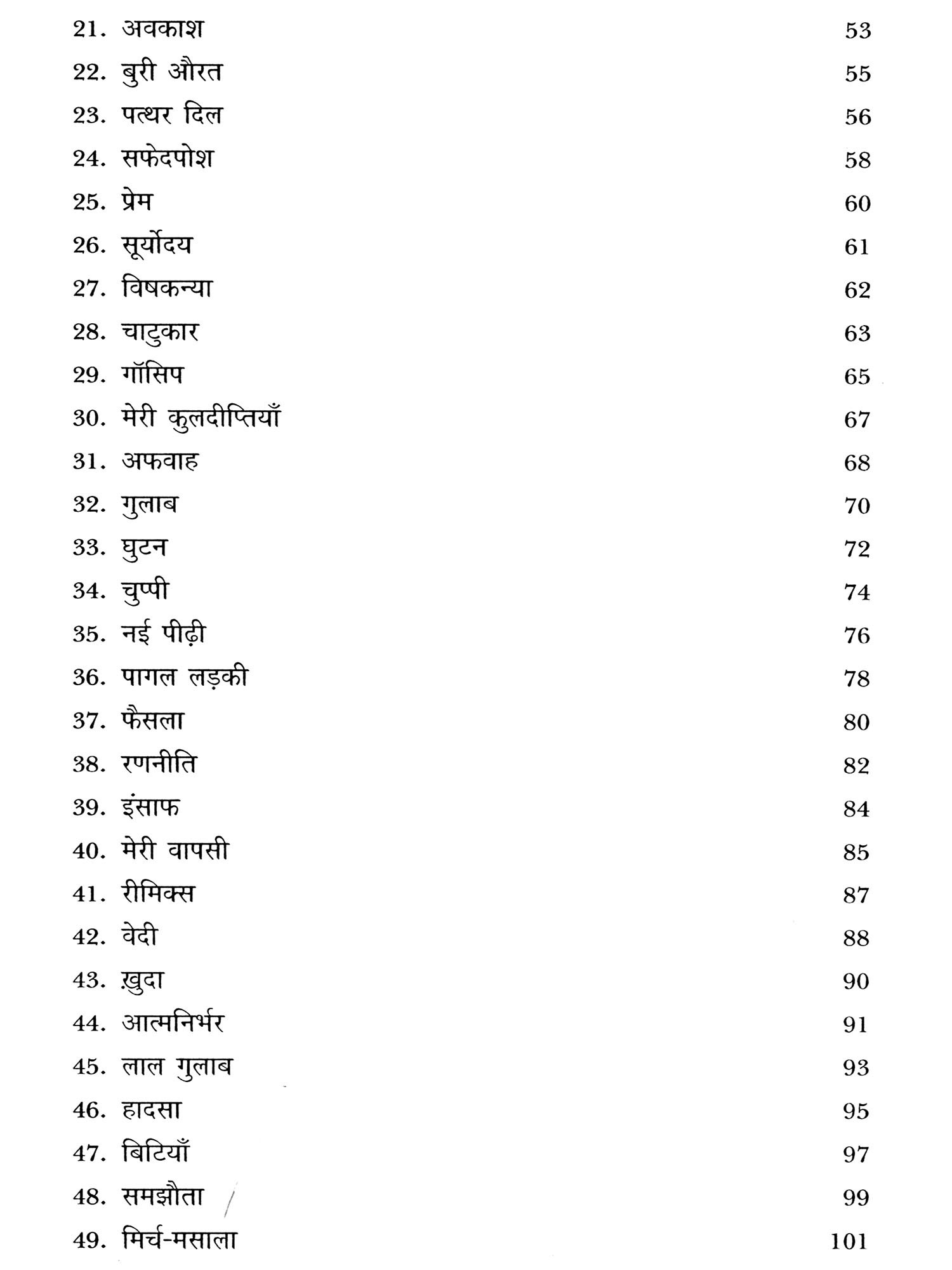 आदरणीय आनंद किशोर जी, अग्रज जवाहरलाल जलज जी, मेरे बड़े भाई गोपाल गोयल जी, 'माटी' पत्रिका के प्रधान संपादक आदरणीय सरस जी, 'माटी' पत्रिका की सुविज्ञ संपादक डॉक्टर सुधा त्रिपाठी जी ने सदैव अपना अमूल्य समय निकाल कर मेरी रचनाओं को पढ़ा और पूर्ण पारदर्शिता के साथ आंकलन करते हुए मेरा मार्गदर्शन भी किया। मैं अपनी अनुजा की सदैव आभारी रहूँगी। इसी क्रम में मेरे भाई सुधीर सिंह जी मेरे लेखन को दिशा देने का मूलाधार रहे क्योंकि शायद वह एक अजीम शख्सियत और लाजवाब पाठक हैं और साहित्य में उनकी पैनी दृष्टि मुझे मेरे लेखन में सुधार के लिए इंगित करती रही, मैं उनकी सदा आभारी रहूँगी। इसी क्रम में सोशल मीडिया में पोस्ट की गई मेरी लघुकथाओं को पढ़कर मेरे अग्रज जनपद बाँदा की शान योगगुरु प्रकाश साहू जी, पूर्व नगरपालिका अध्यक्ष राजकुमार राज जी, जनाब सैय्यद अहमद मगरबी जी, अनुज महान समाजसेवी अमित सेठ भोलू जी, श्रीमती आरती खरे, आरती माथुर, नाजिश नबी, ज्योत्स्ना पुरवार दी, नसीमा सिद्दीकी, डॉक्टर मनोरमा यादव, डॉक्टर अंजना जादौन, डॉक्टर पंकज सिंह मेरी कविताओं और लघुकथा को सराहना कर मेरी हौसला अफजाई करती रहीं, मैं उनके प्रति भी आभार ज्ञापित करती हूँ। मैं अपने अभिन्न आत्मीय मित्र जो मेरे लेखन को पढ़ने का समय जुटाते हैं, मेरी कहानियों, कविताओं, लघुकथाओं की तार्किक समीक्षा करते हैं और लेखन का संबल भी प्रदान करते हैं, मैं उनको भला कैसे बिसरा सकती हूँ इसलिए मेरी अग्रजा डॉक्टर, कवि, समाजसेवी शबाना रफीक, प्रोफेसर दीपाली गुप्ता, डॉक्टर जयंती सिंह, डॉक्टर सपना सिंह, श्रीमती श्रद्धा निगम, श्रीमती उमा पटेल, श्रीमती छाया सिंह, श्रीमती आशा सिंह, मेरी बालसखा अणिमा खरे, गारिमा खरे की सदैव आभारी रहूँगी। राष्ट्रीय खो-खो एसोसिएशन के नामित सदस्य भागवत प्रसाद मेमोरियल इंटर कालेज के प्रबंधक श्री अंकित कुशवाहा जी भी अक्सर मेरी कविता और लघुकथा को पढ़कर उसकी सराहना करते मैं उनके प्रति भी हार्दिक आभार ज्ञापित करती हूँ।