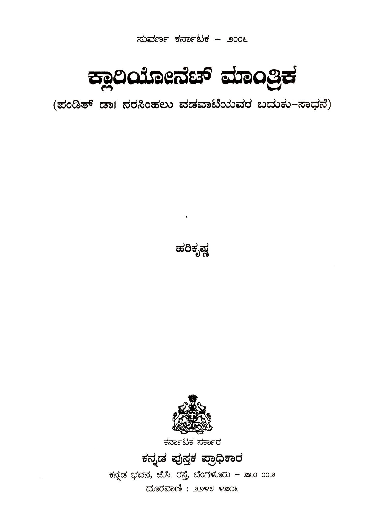 ಕ್ಲಾರಿಯೋನೆಟ್ ಮಾಂತ್ರಿಕ- Clarionet Mantrika: Life Story of Pandit Dr. Narasimhalu Vadavati (Kannada)