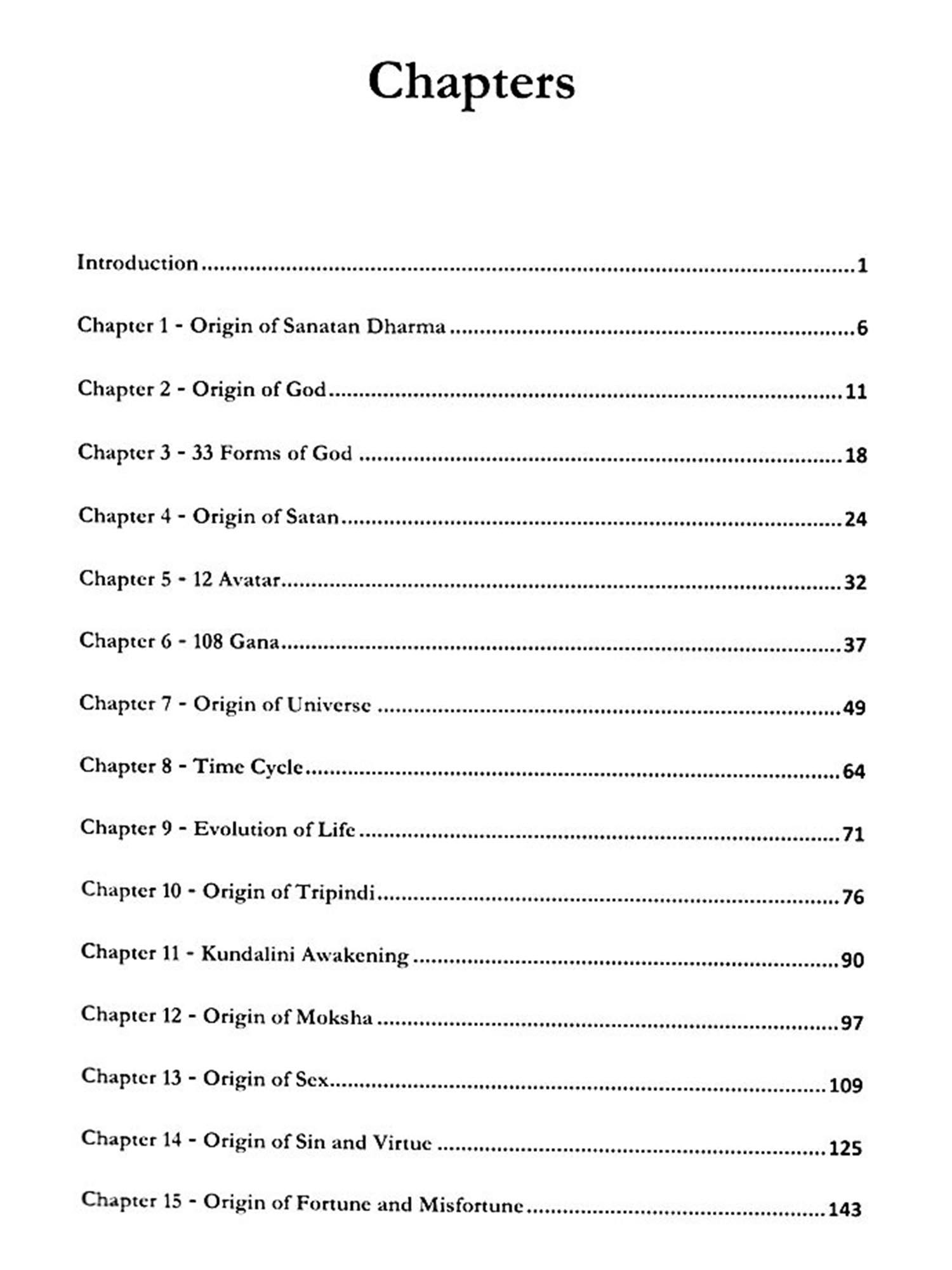 ""CODE-Core of Dharma Eternal"" is an unofficial and non-academic treatise on Sanatan Dharma, as it also includes my experience and my journey. If I remove my experience and my journey from this book, then it can be the official academic treatise on Sanatan Dharma. It has 18 chapters, namely the origin of Sanatan Dharma, the origin of God, 33 forms of God, the origin of Satan, 12 avatars, 108 Ganas, the origin of the universe, the time cycle, the evolution of life, the origin of Tripindi, Kundalini awakening, the origin of Moksha, the origin of sex, the origin of sin and virtue, the origin of fortune and misfortune, the origin of heaven and hell, the origin of the Varna system, and the origin of Samudra Manthan.