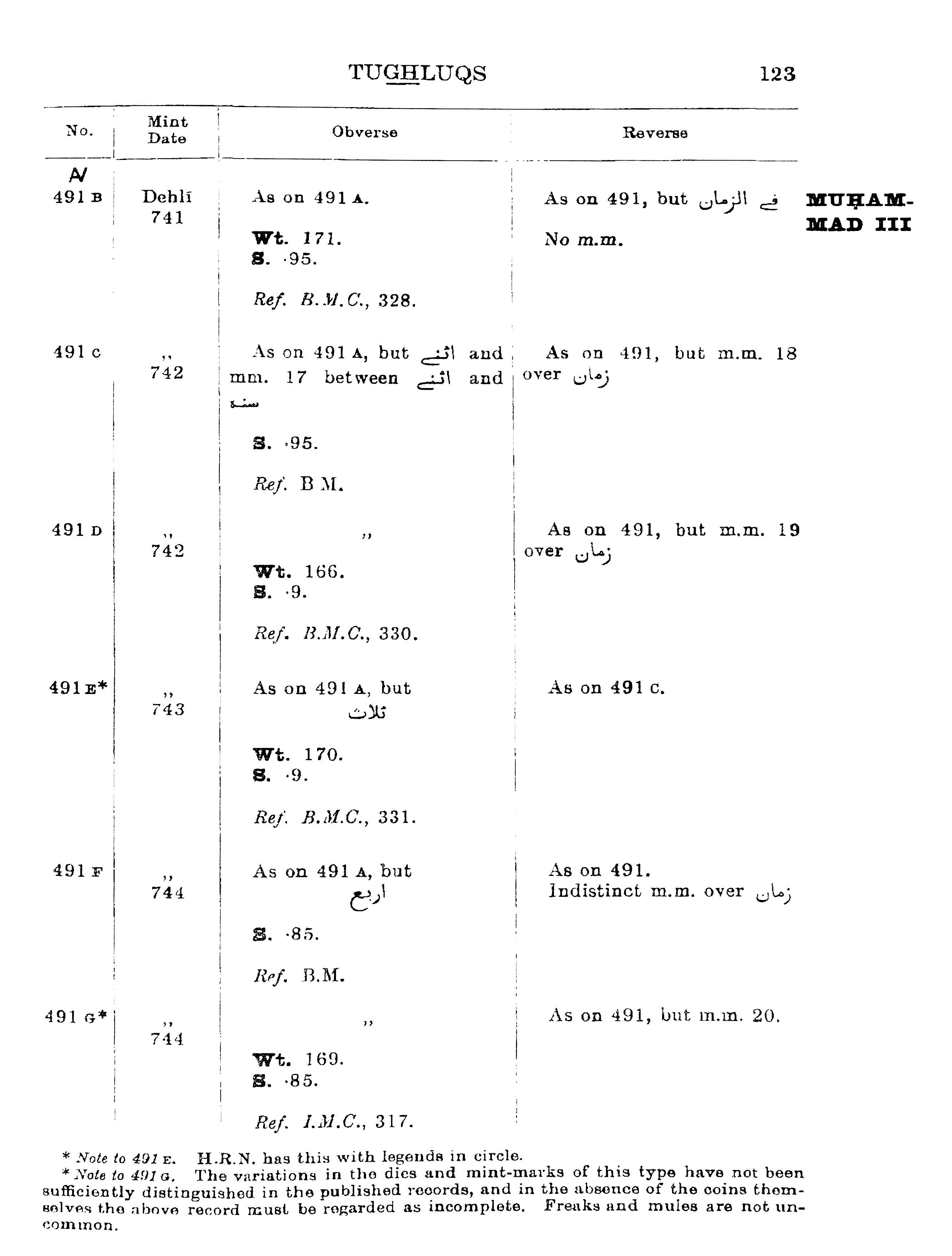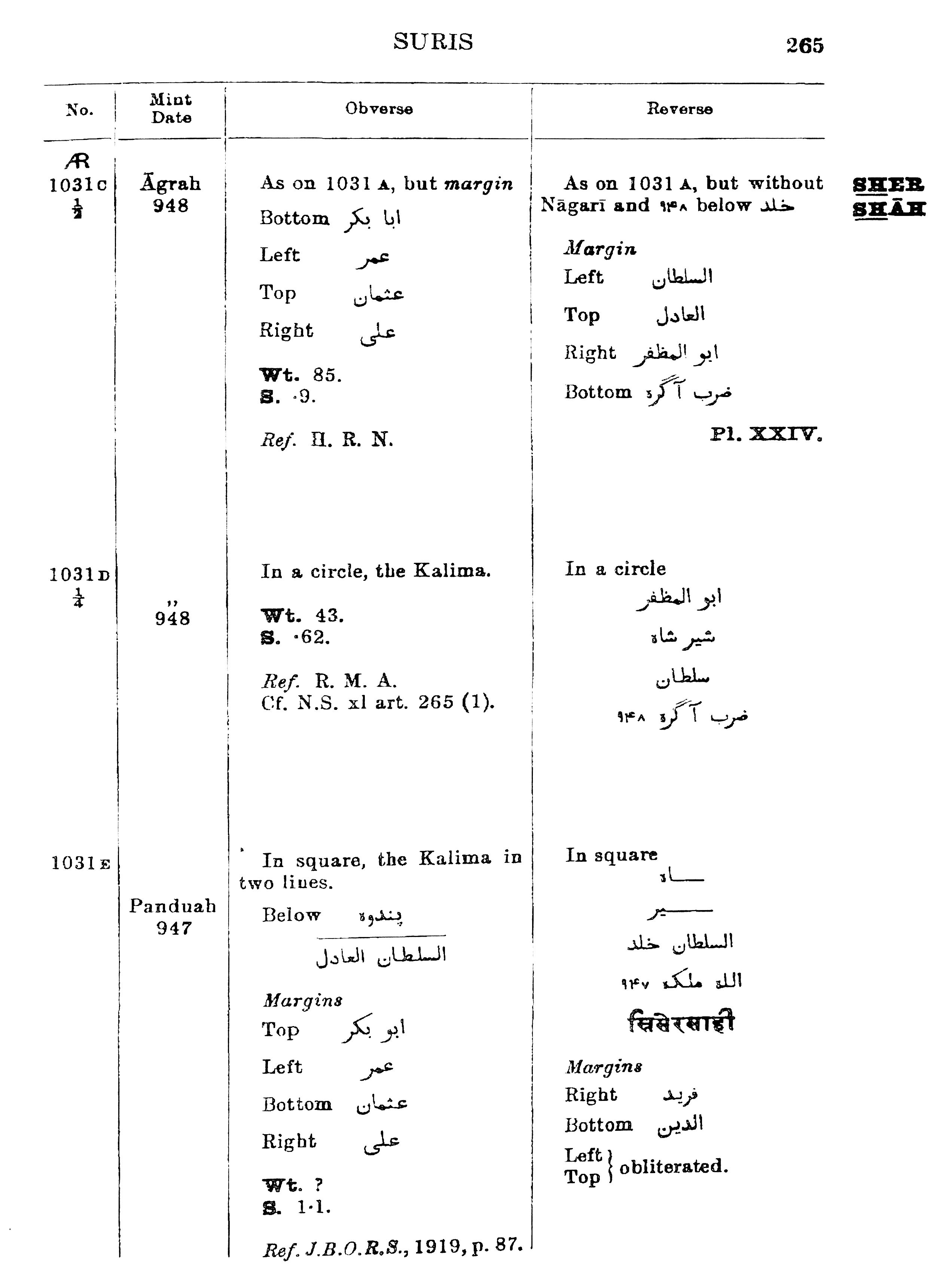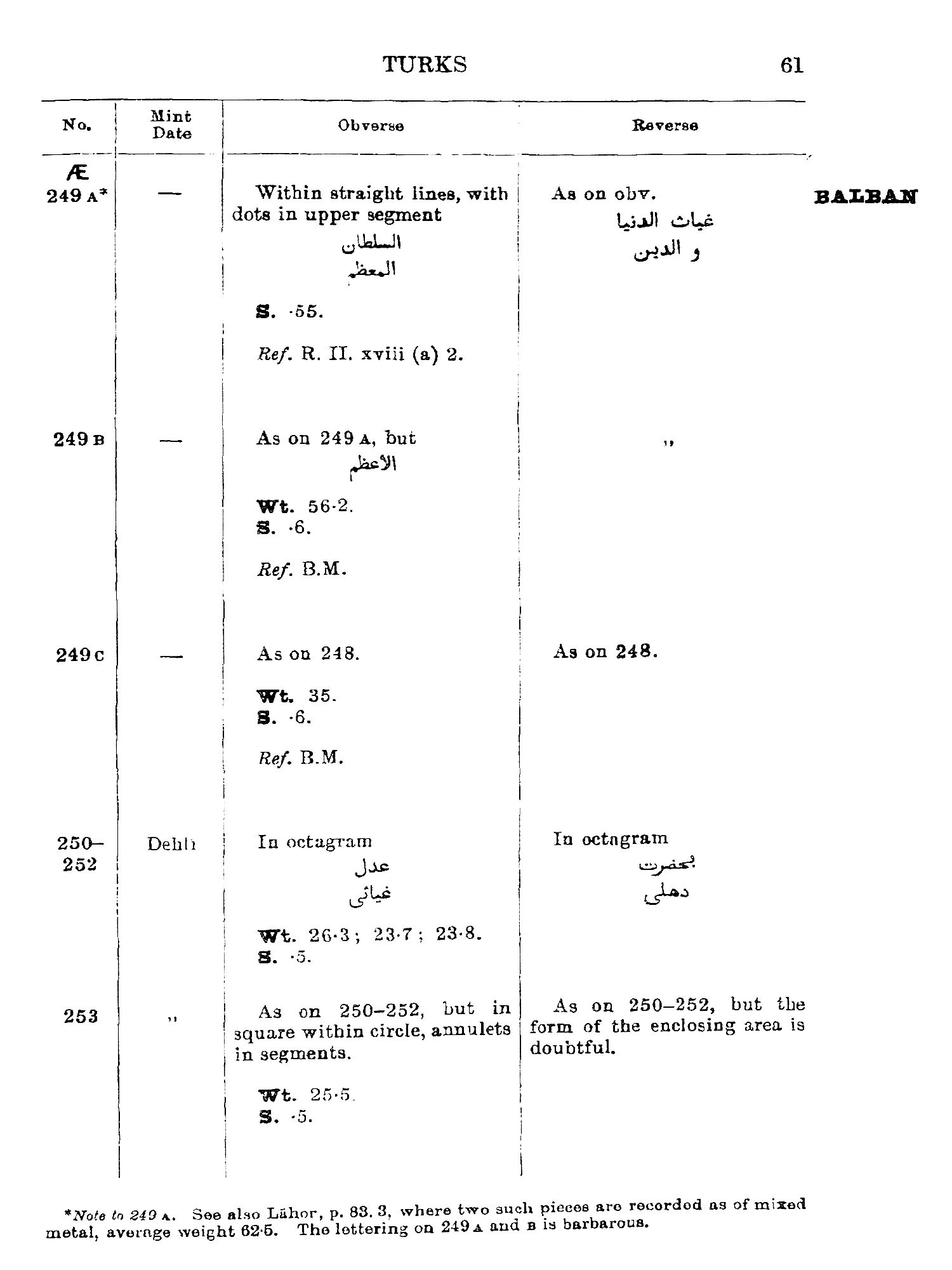 THE nucleus of this Catalogue is a collection formed by the author in the United Provinces of Agra and Oudh between the years 1894 and 1924. It seemed fitting that the coins should find a permanent home in Delhi, of whose Sultans they are a numismatic record. An offer was accordingly made and accepted. The gold and silver coins (53 A-223 At) were acquired by the Director-General of Archaeology in India for the Delhi Museum. The billon and copper coins (over 1,200) were presented on the understanding that the collection should be preserved intact, and a printed catalogue of it published on the lines of the coin catalogues issued by the principal museums in India. This I undertook to prepare.