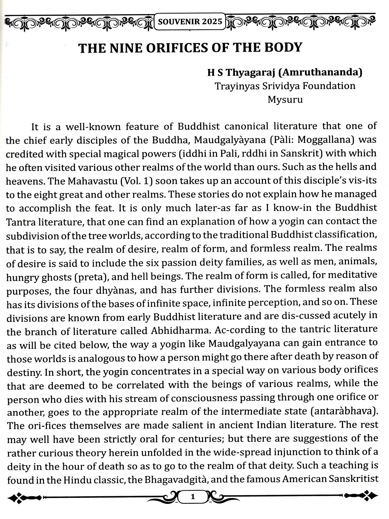 Publisher: Trayinyas Shrividya Foundation, Mysore