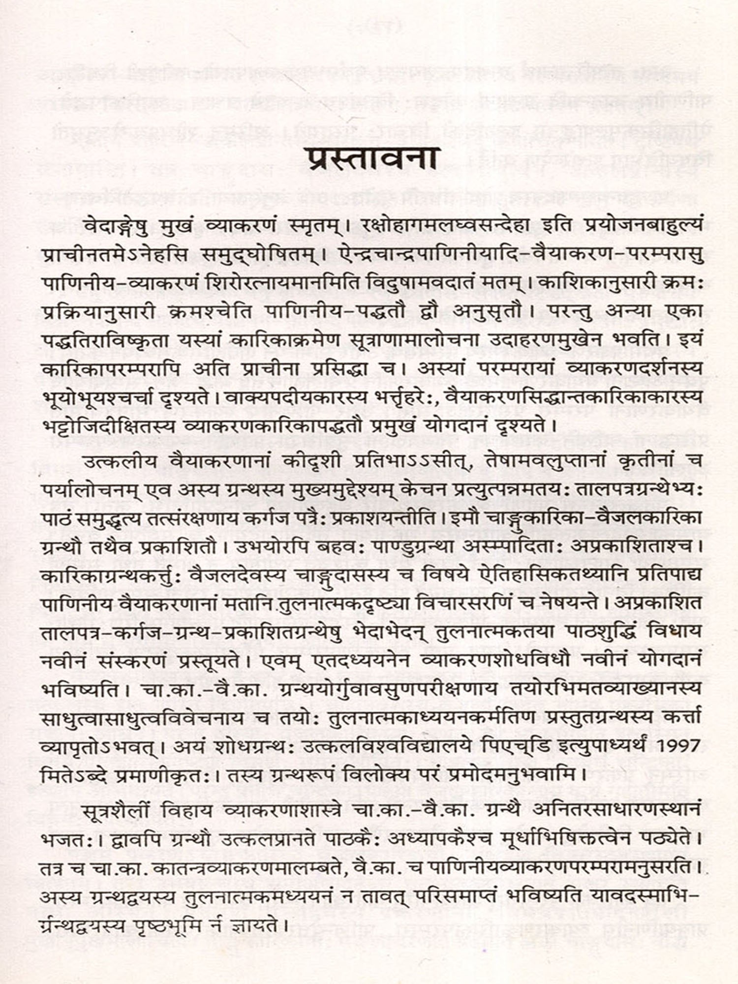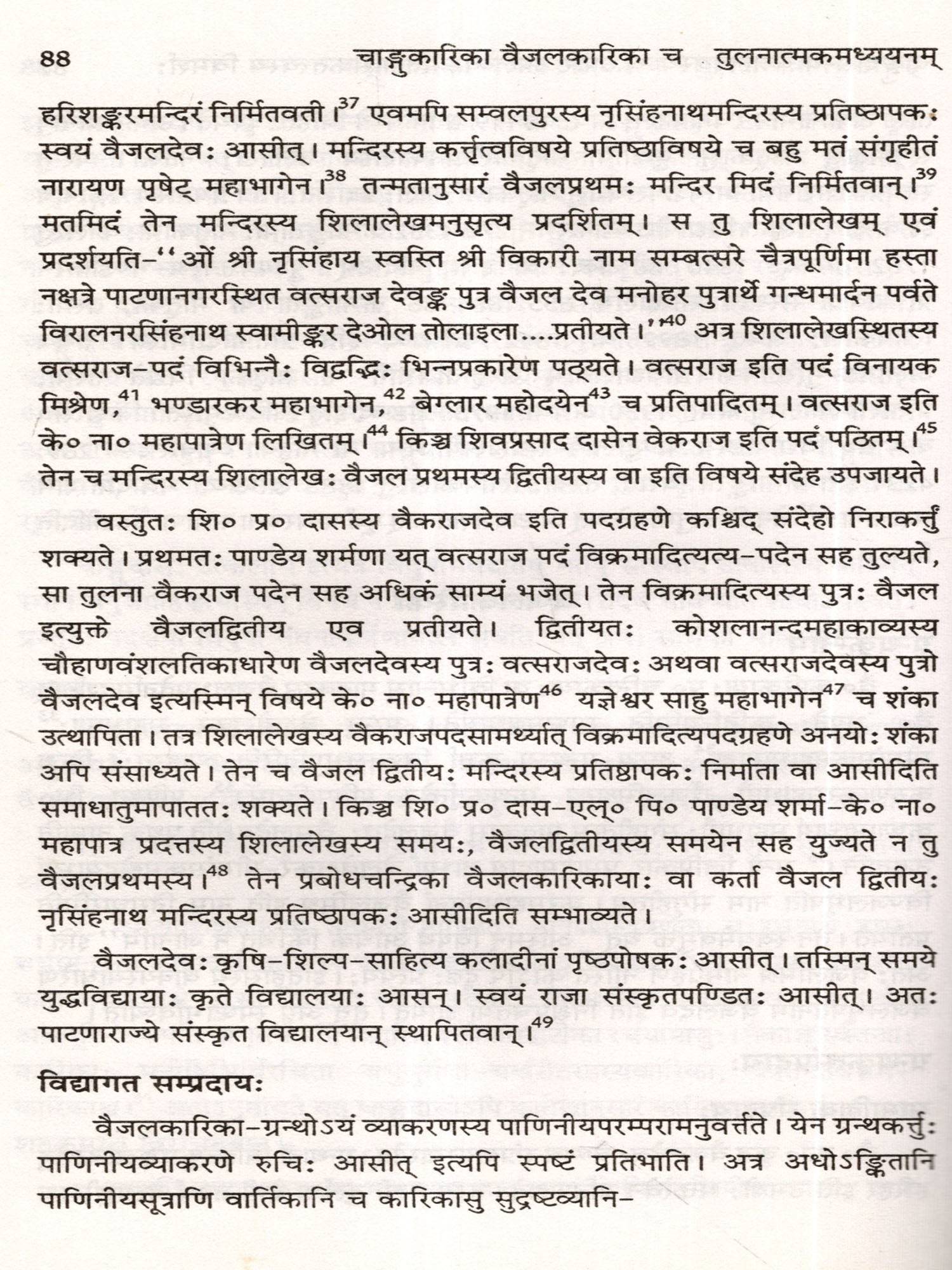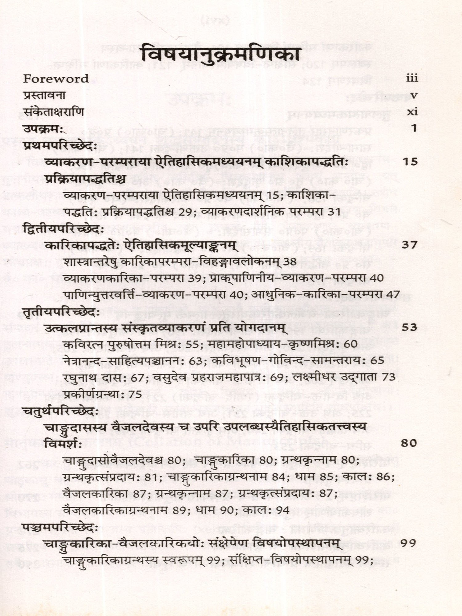 Orissa rich in literature, are and architecture, philosophy and religion has a sound grammatical tradition. The authors so far located belong to the commentary school or sectarian school. The authors belong to mainly five schools viz. The Paninian school, Cangu Karika of Cangu Dasa and Vaijala Karika of Vaijala deva are very popular in Orissa. Their period is fixed to be sixteenth century A.D. The present study of Dr. Dinabandhu Tripathy comprises of the critical edition and comparative study of two books. The study is comprehensive and quite informative. The scholars of the east and west will be delighted to see the Orissan contribution to the field of grammar and make thorough study in future.