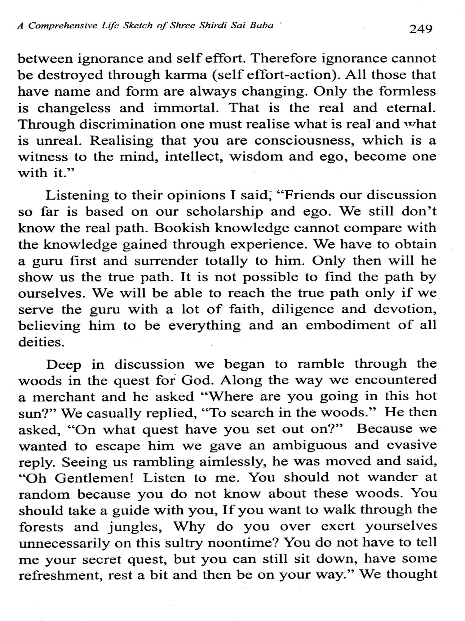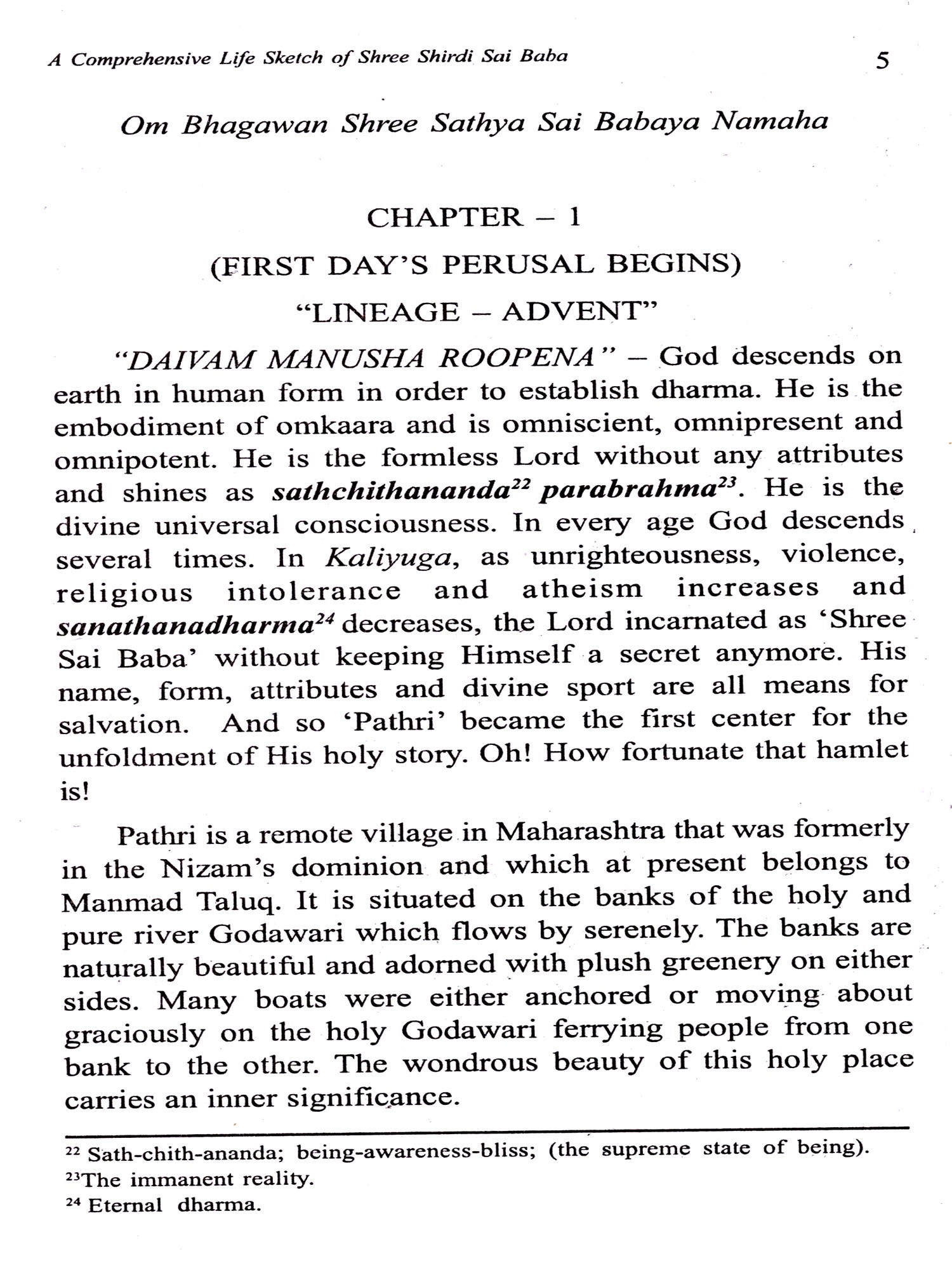 Devotion towards Lord Sai, the Lord of the Kaliyuga², enables all creatures to cross the ocean of samsara easily. Lord Sai, the ocean of compassion, is pleased even when one merely thinks of Him. All those who sip the nectar of His divine sport gets rid of all difficulties, poverty, illness and ignorance and attains eternal bliss. Consuming the feast of Lord Sai's leelas (Divine sport). is the safest and easiest way that gives one joy of both this world and the one beyond. It showers bliss on devotees and satisfies all their desires.