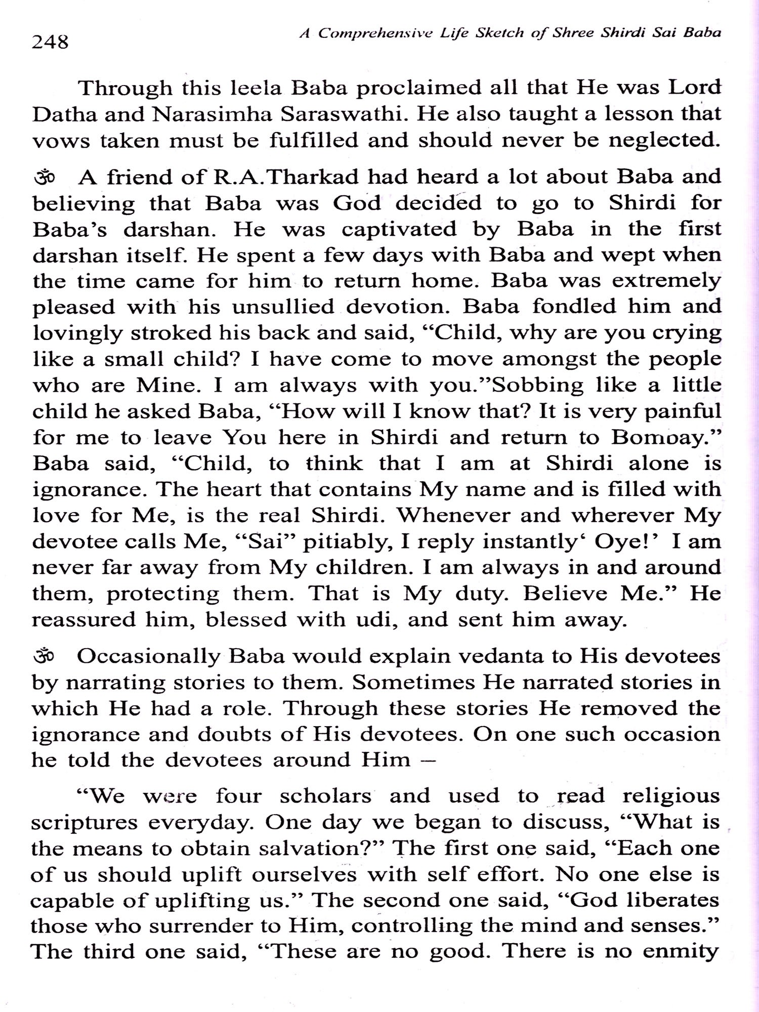 In this epic some of Baba's leelas have been presented along with their inner significance from a Vedantic outlook to enable devotees 'to comprehend the Vedantic meaning behind Baba's leelas.