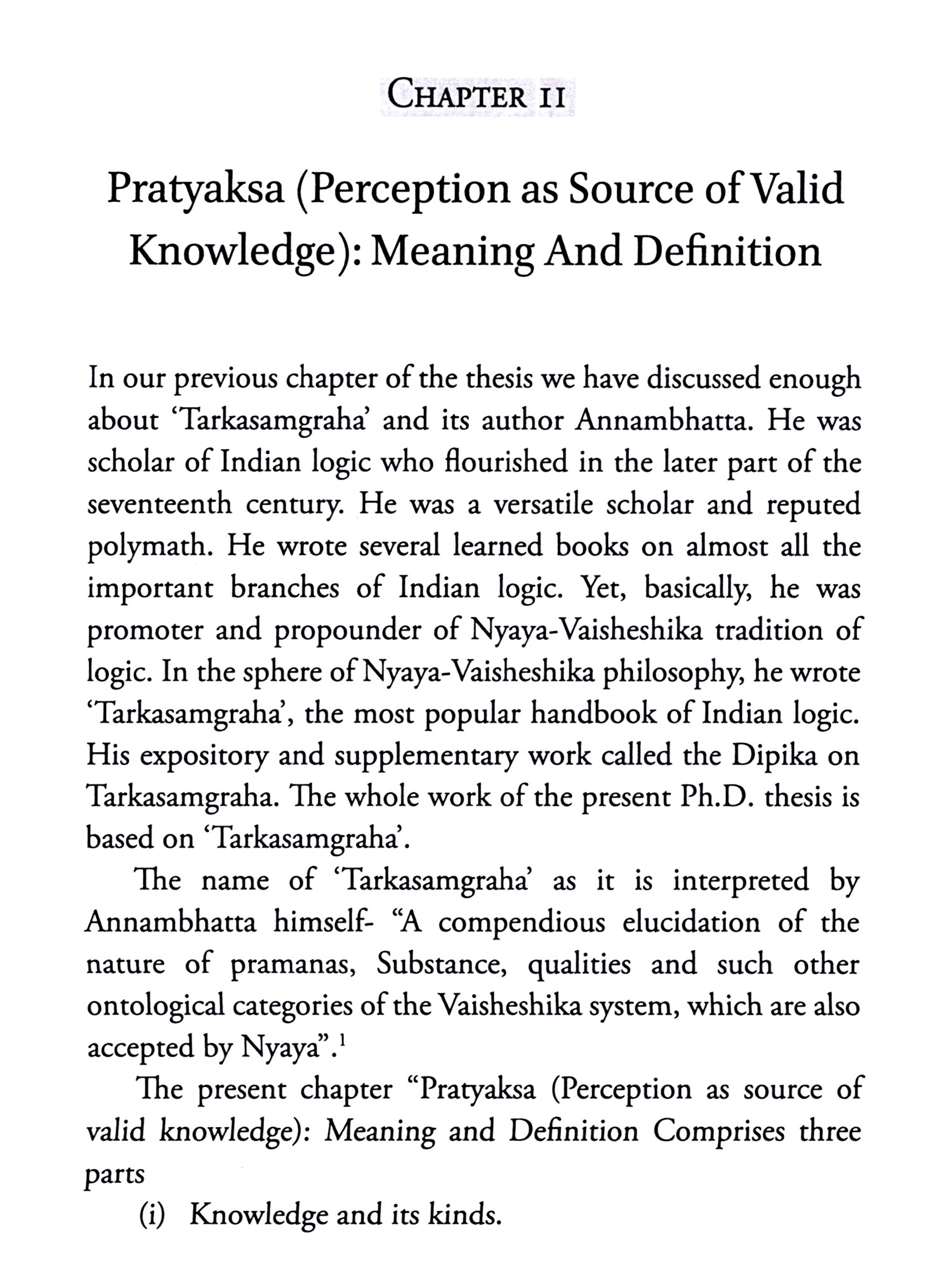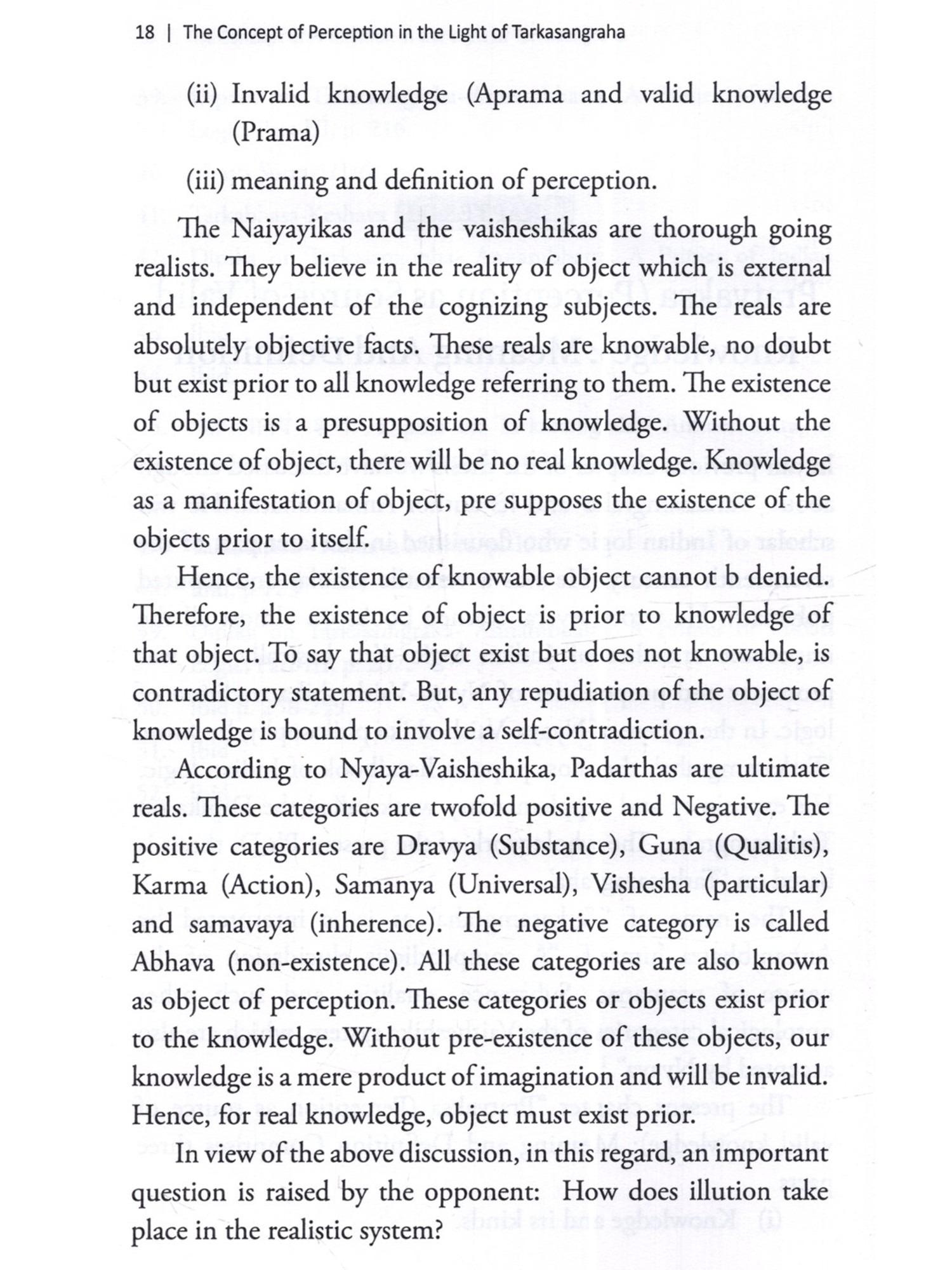 The Concept of Perception: in the Light of Tarkasangraha