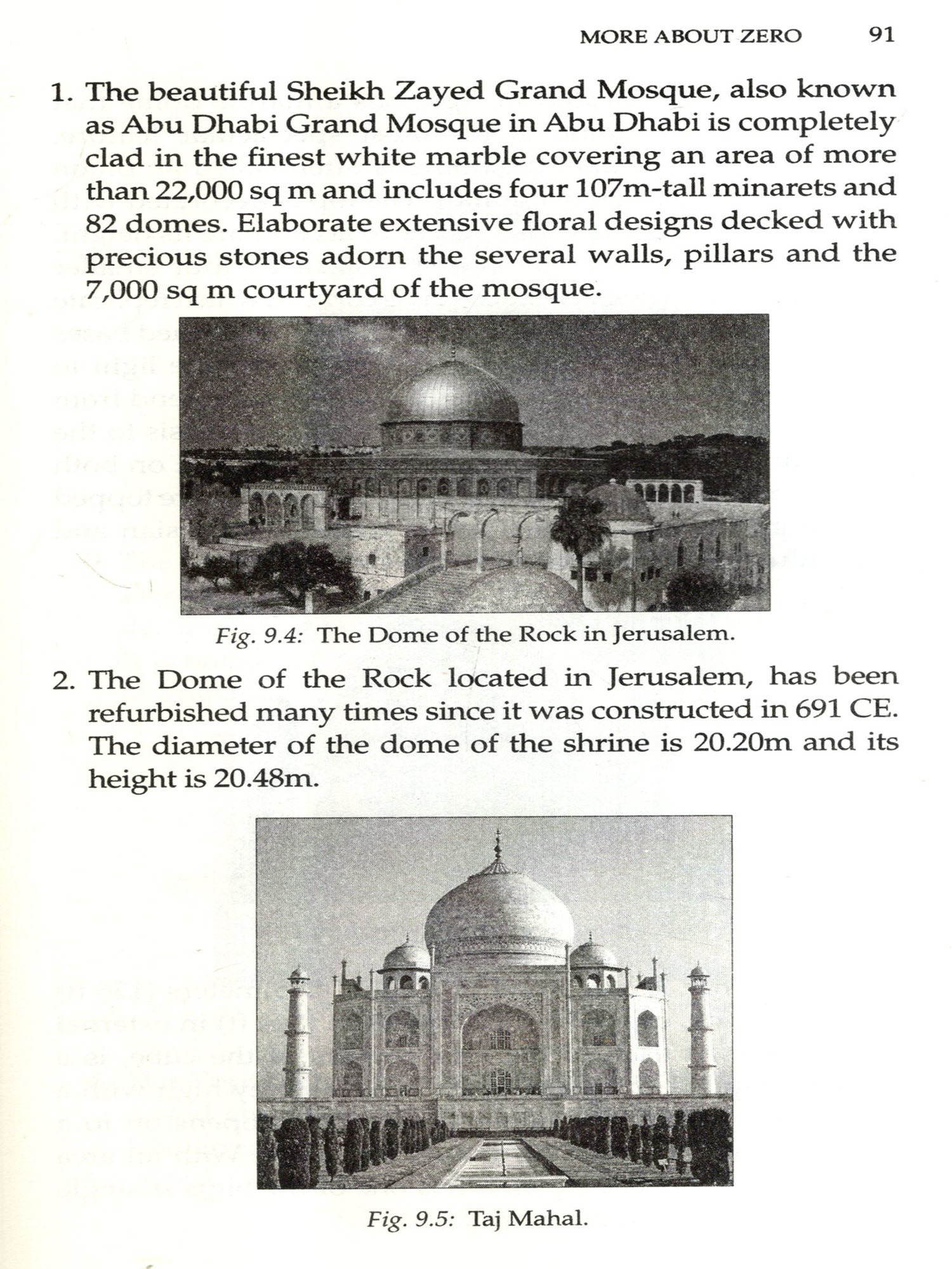 Apart from the exposition relevant to mathematics, use of zero in mathematics and its role in science, technology and of NBT Also, it covers technological aspect of zero where architectural ingenuity is concerned with the nucleus of daily life is taken care of, in accordance with the requirement garbhagriha of a temple, which is said to be at the zero point at which the deity is installed. In addition, cognizance is mosques or planetariums which consists of arches, in the taken of the domed roofs, may be of temples, churches, form of a hemisphere or segment of a sphere, essentially looking like arcs of a circle from a distance, apart from arcs used at various places including the top of windows.
