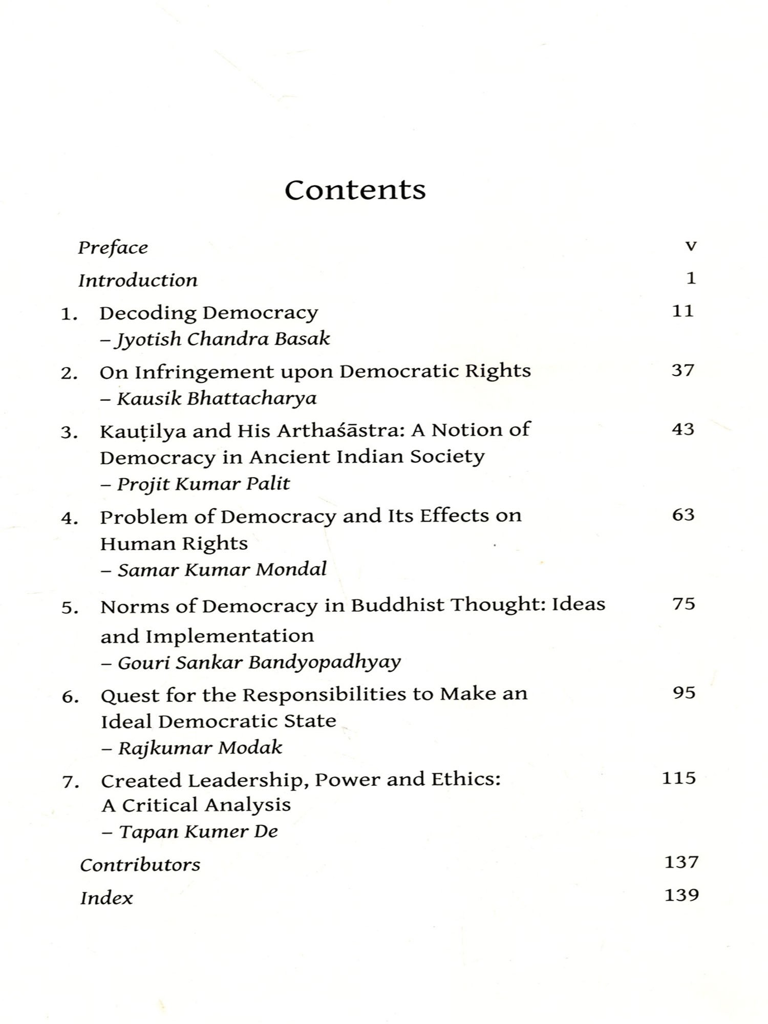 Some of the articles of this volume are a product of group discussion held regularly during the last five years. We have tried to arrive at a particular conclusion regarding the conditions for becoming a democratic state. The members of this group have chosen different areas of democracy for the purpose of exploring the field. I would like to thank all the members of the heterogeneous group for extending their help, academic as well as non-academic, towards the publication of this book. I would like to take this opportunity to thank all our colleagues whose concern and inspiration of thought-provoking comments from time to time have made the publication of this book possible.