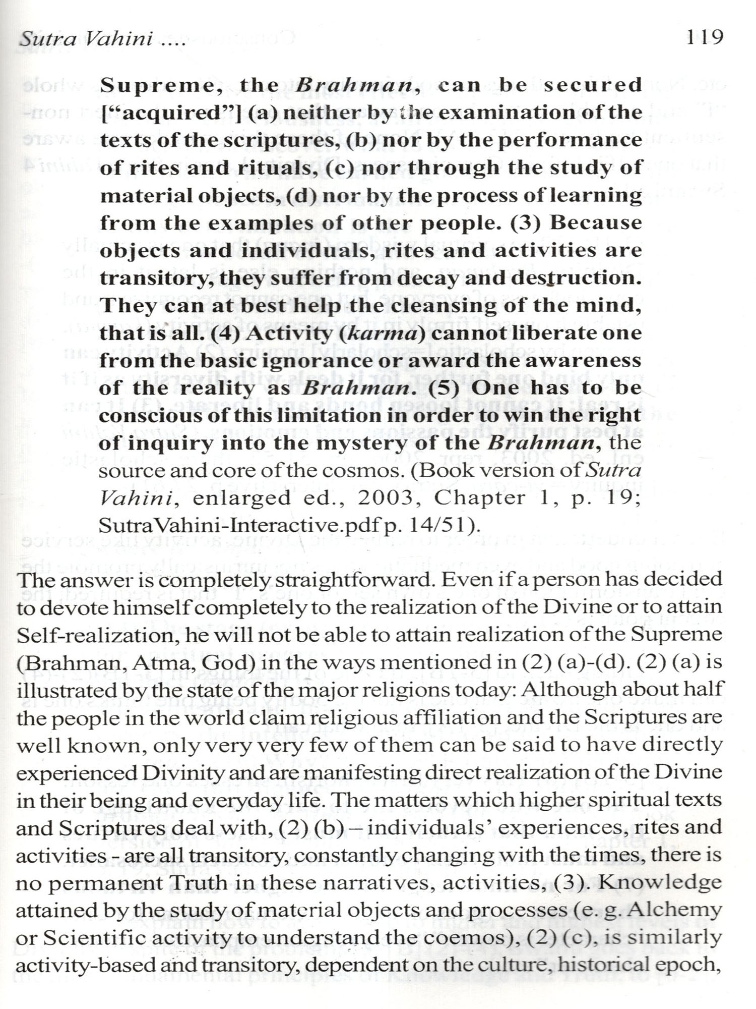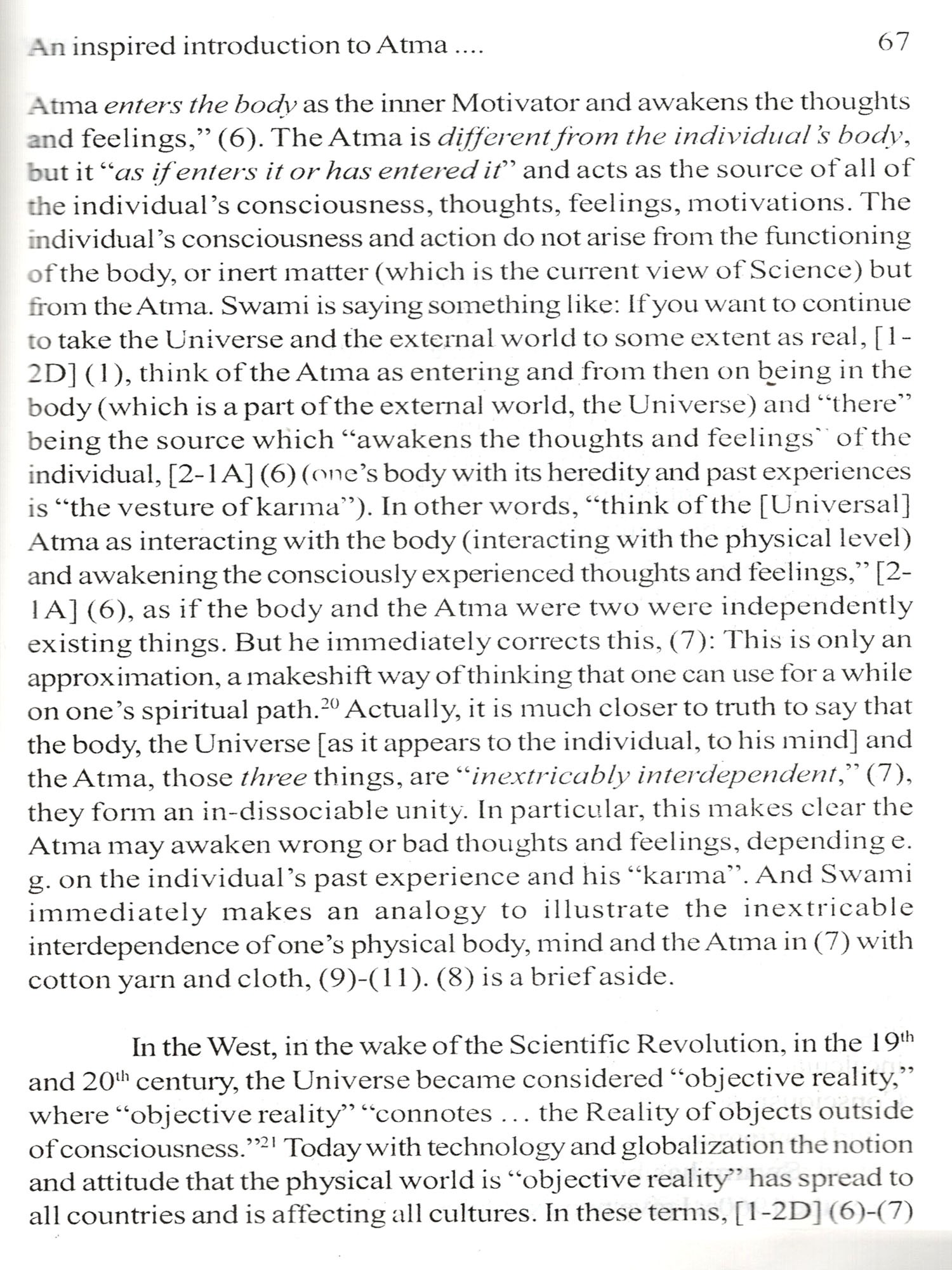 Actually, however, over the years Swami has unfolded an understanding of the Truth of the Universe and Existence that is in its outlines as clear and developed as the understanding developed by Science, but that deals with the actualities and realities of human conscious subjective experience everywhere, in all cultures, all religions, in every human knowledge enterprise. Although in his writings and discourses Swami is constantly referring to the Vedas and Upanishads as sources of highest knowledge of Divinity and Reality, actually the vision/understanding he is teaching is universal, i. e. is valid for and can be understood by human beings everywhere, in all cultures and traditions and is self-standing (understanding it does not depend on Indian tradition).