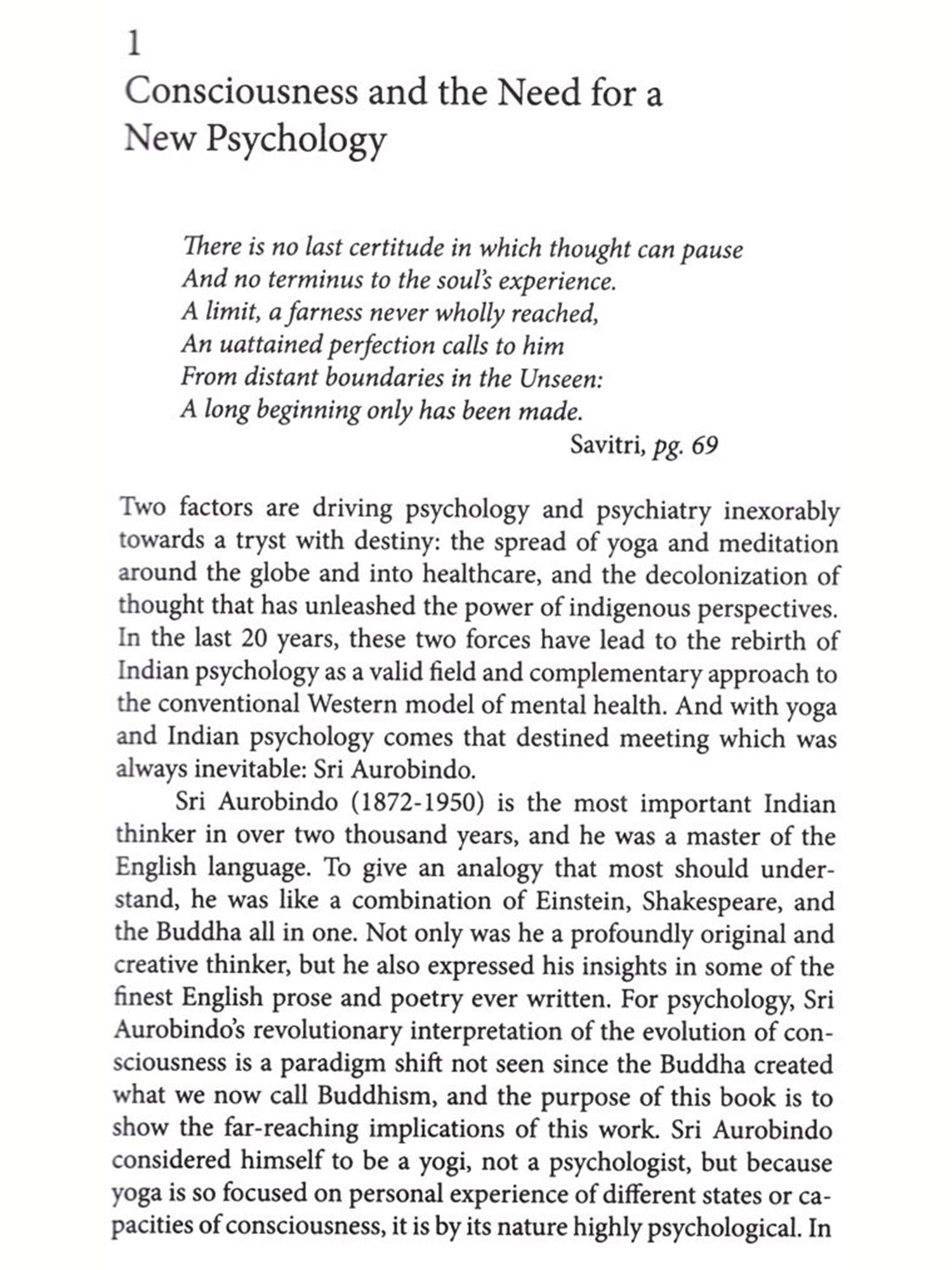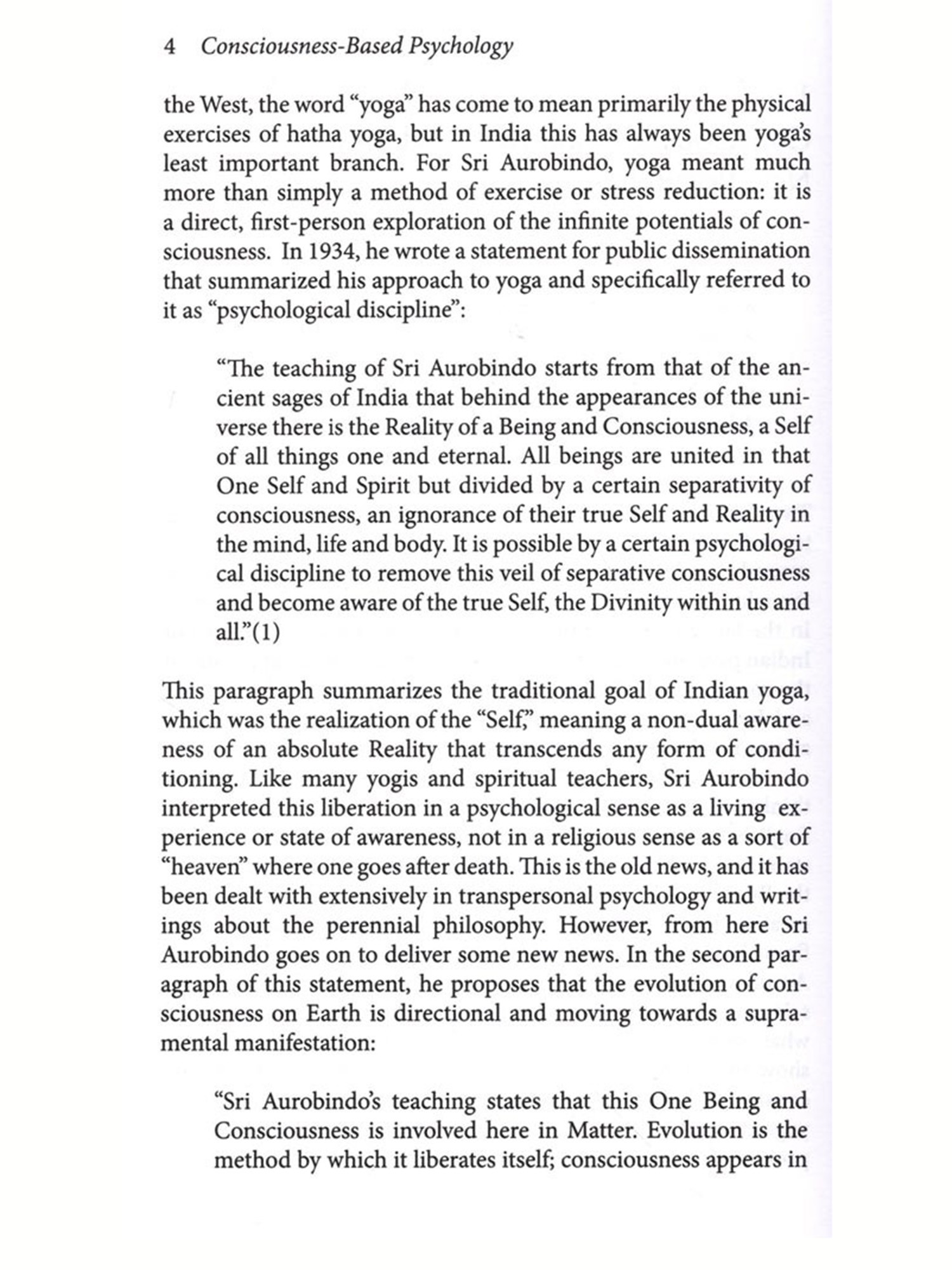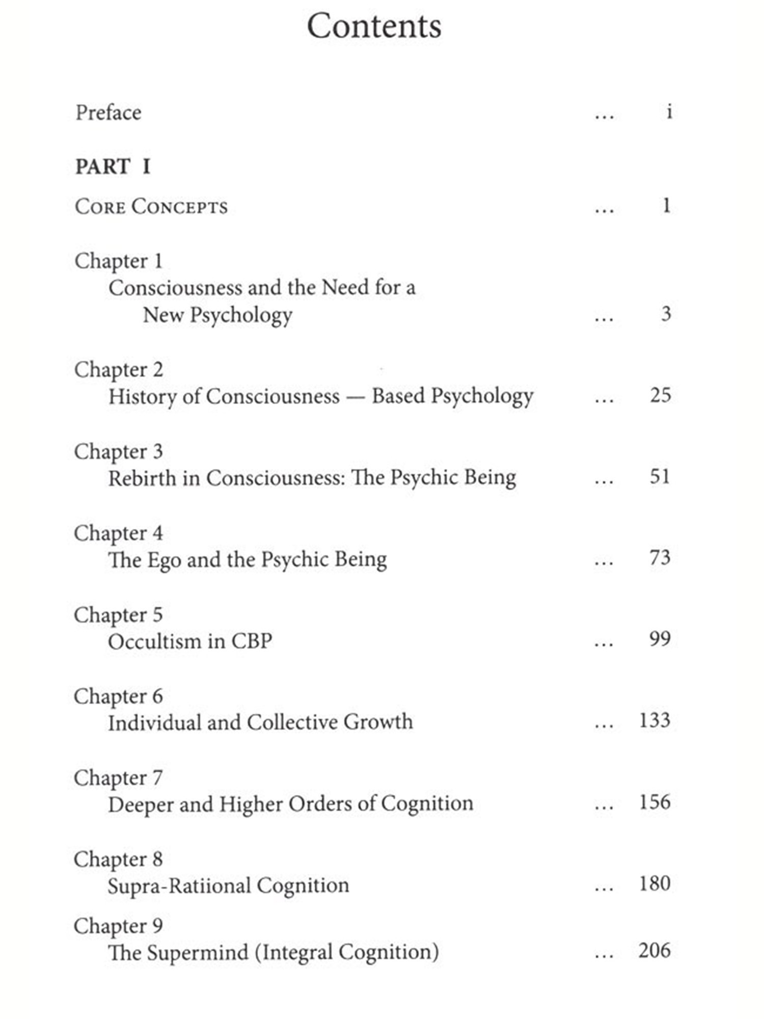 Part 1 of this book reviews the main themes and concepts from Sri Aurobindo's yogic worldview that frame the discussion of consciousness and consciousness-based psychology (CBP). In Chapter 1. Dr. Miovic presents the philosophy of Sri Aurobindo and Indian yoga, with an eye towards readers outside of India who may have a limited background in this tradition of thought. In Chapter 2, Dr. Basu then reviews the history of Western psychology as seen through the lens of Indian yoga and the consciousness perspective. Chapters 3-9 proceed to present the core concepts of CBP, with a focus on the relationship between CBP and the biopsychosocial model of psychology and psychiatry. These chapters address key issues such as the psychic being (evolving soul), karma, rebirth, the relationship between the soul and the ego, occultism, the possession model of illness, the communal and social dimensions of CBP, and higher and deeper orders of cognition. This survey of Sri Aurobindo's detailed and disciplined approach to what is loosely called "intuition" culminates in an extraordinary case study of how the Mother used supramental cognition to experience LSD without actually ingesting the substance.