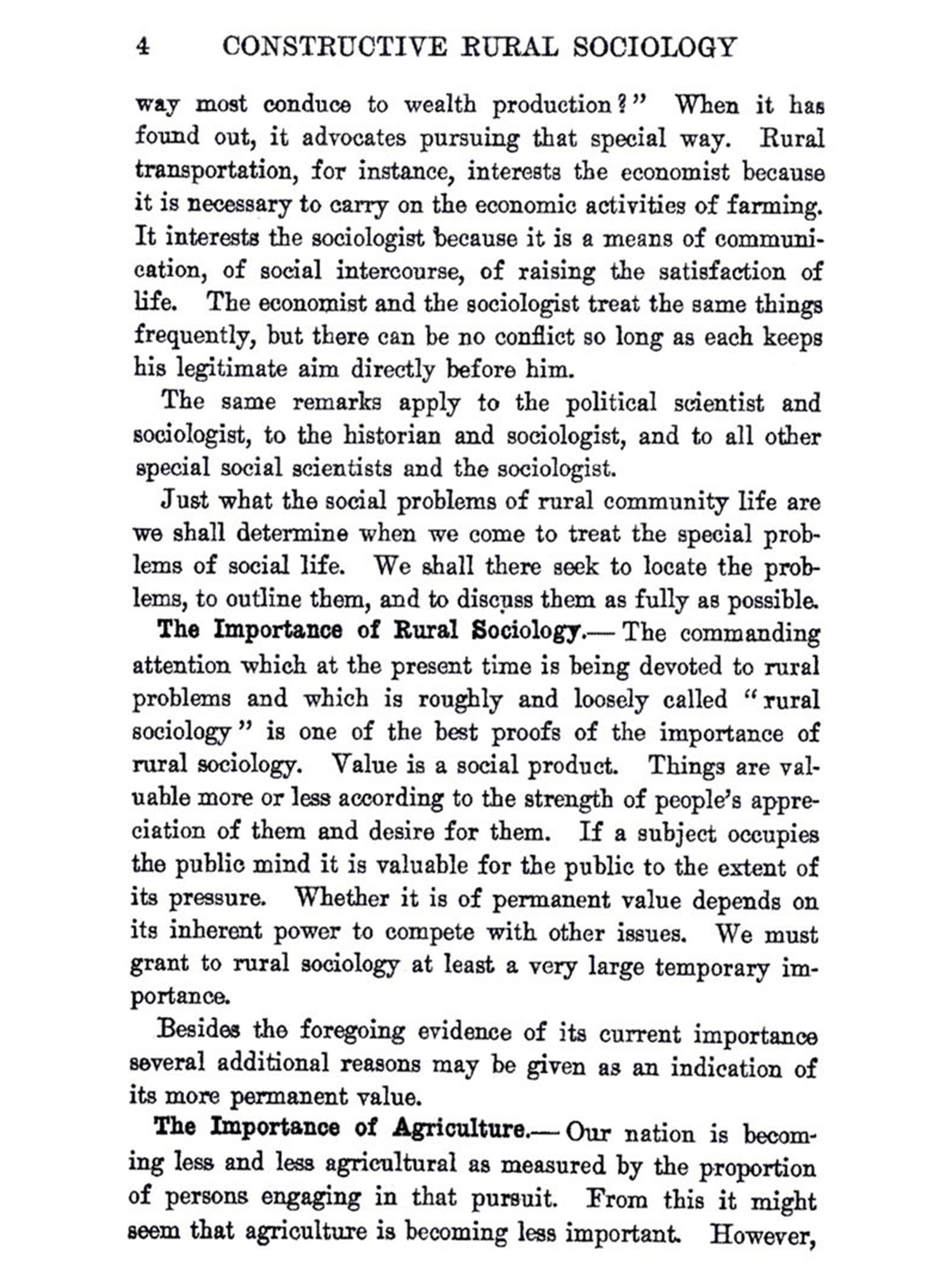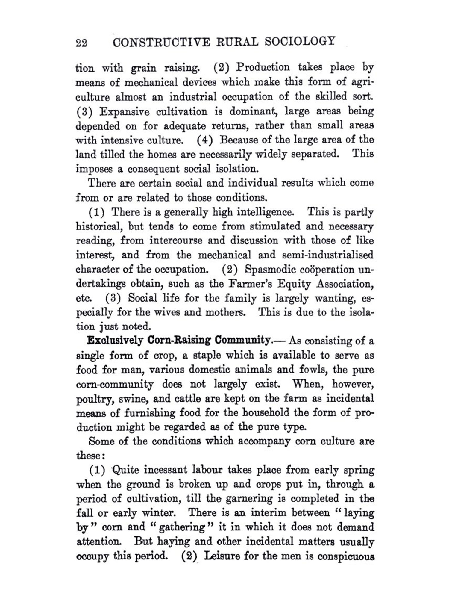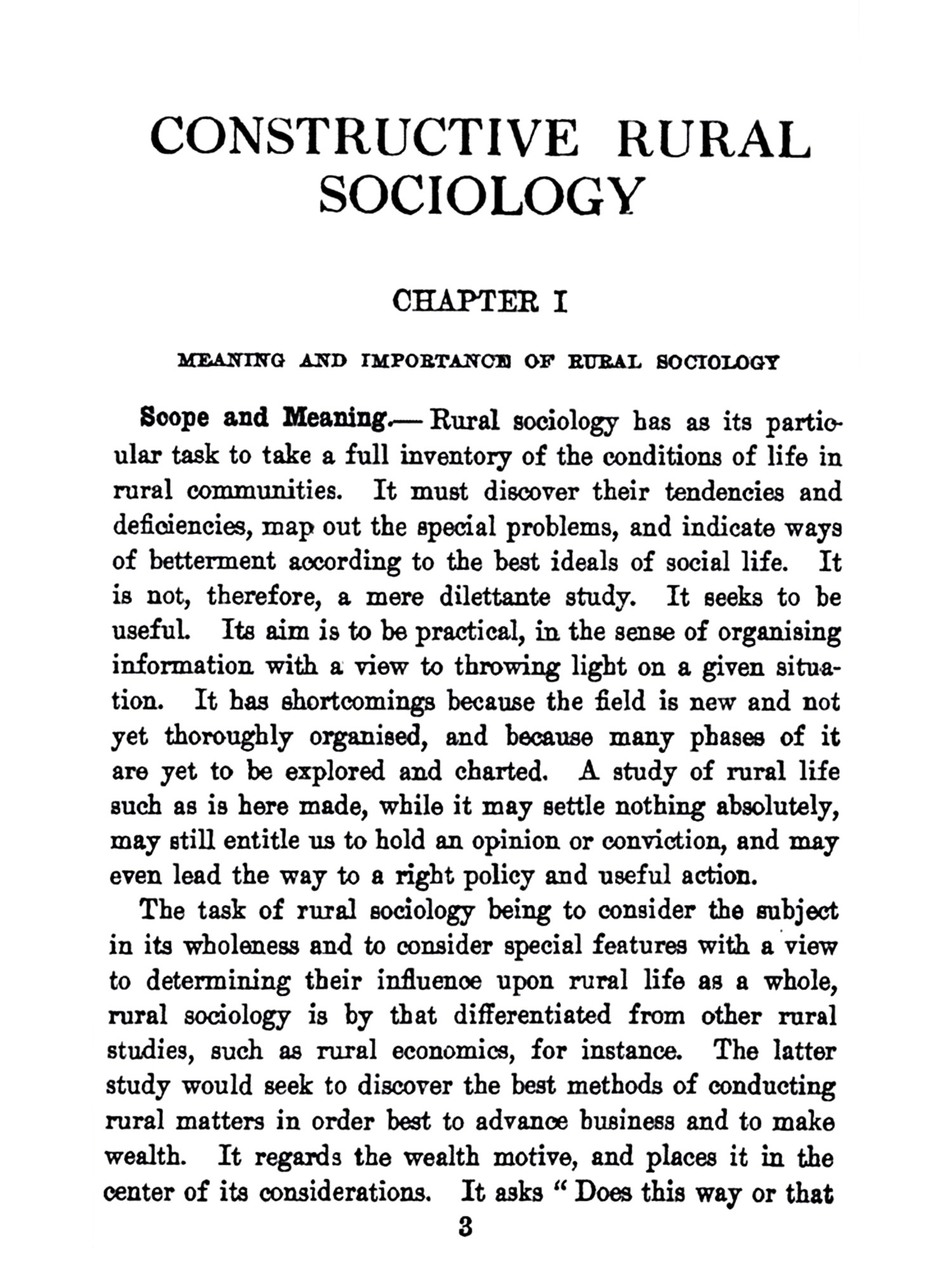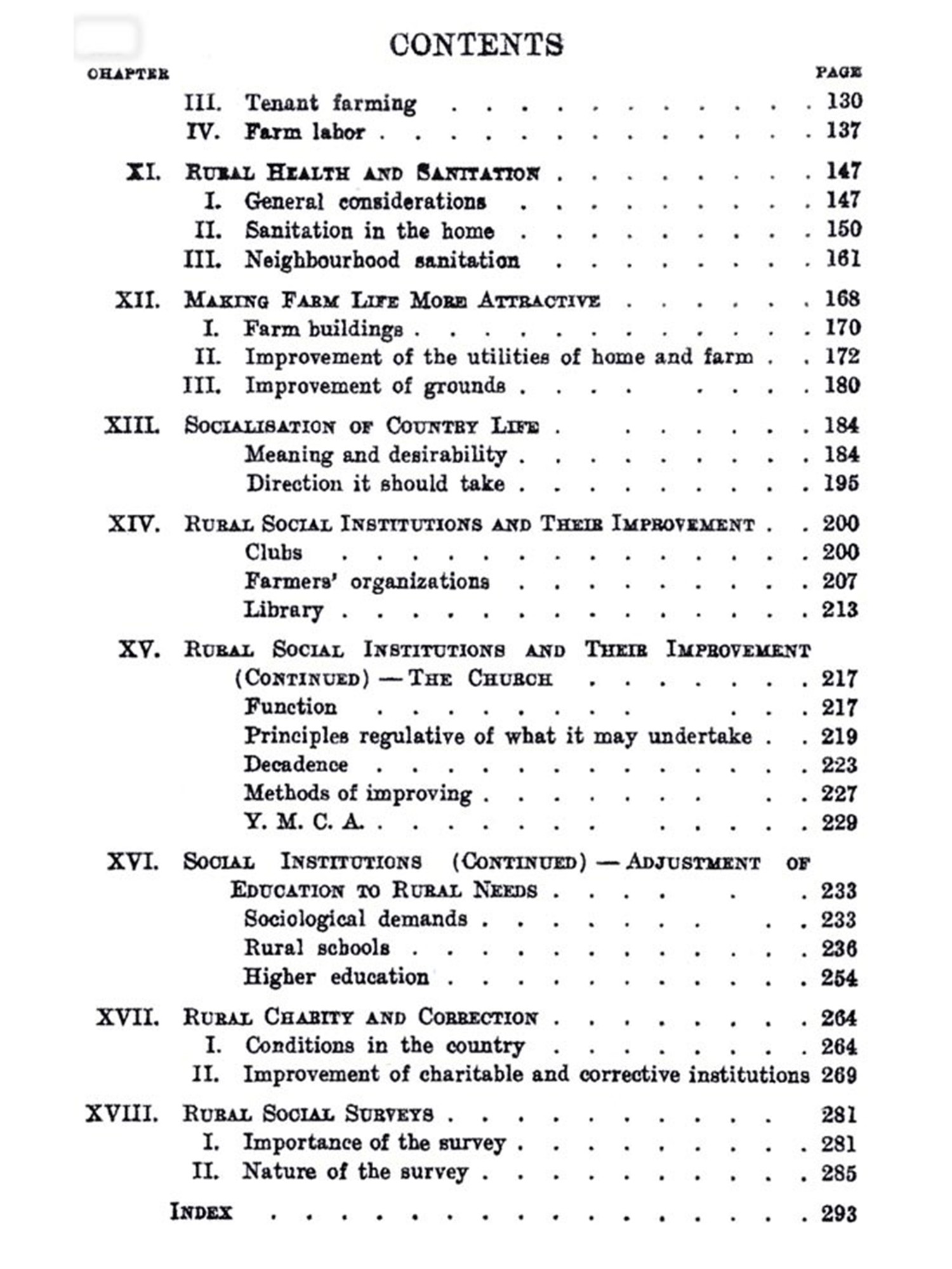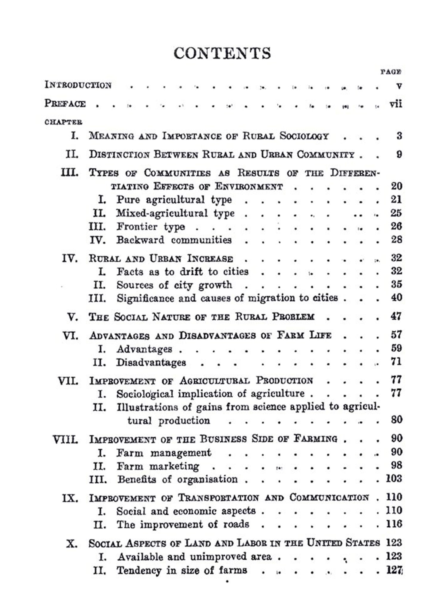 Rural conditions are attracting widespread attention. Numerous articles and volumes dealing with country-lifo matters have appeared during the past few years. While many of the books issued are exceedingly useful hardly any of them could be considered a rural sociology. To consider together the various phases of the life of the rural com-munity and so to organise and present them that they shall convey a knowledge and appreciation of the problems of country life is surely a useful undertaking. The present modest volume is an attempt to do this. The writer's interest in rural matters was first aroused by Professor Charles R. Henderson's course on "Rural Communities" at the University of Chicago in 1900. A course of lectures entitled "North Dakota Sociology" was offered students of the University of North Dakota in 1908. But in order to interpret many local conditions a larger comparative study was necessary. This larger un-dertaking furnished the foundation for the present volume. In this volume it is sought to define the scope of rural sociology, to differentiate between rural and urban communi-ties, to distinguish the types of rural communities in the United States and to indicate the physical and social influ-ences which have produced them, to consider the movement of population from country to city and the nature of the moving conditions, to compare the advantages of country and city, to mark out the nature of the rural problem, to con-sider the improvement of agriculture, farm marketing, farm labour, and the farm home so far as they concern rural com-munity welfare, and to take an inventory of social institu-tions and indicate how they may be improved.